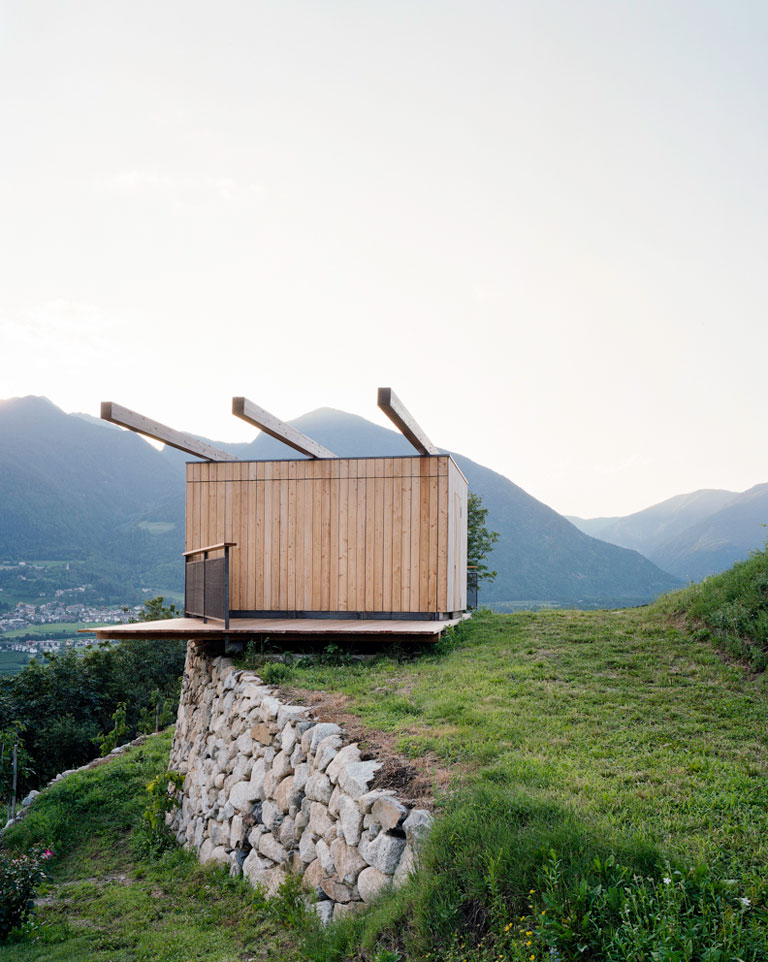 Un cubo de alerce en el Alto Adigio. Lugar de trabajo entre la naturaleza y sus viñedos