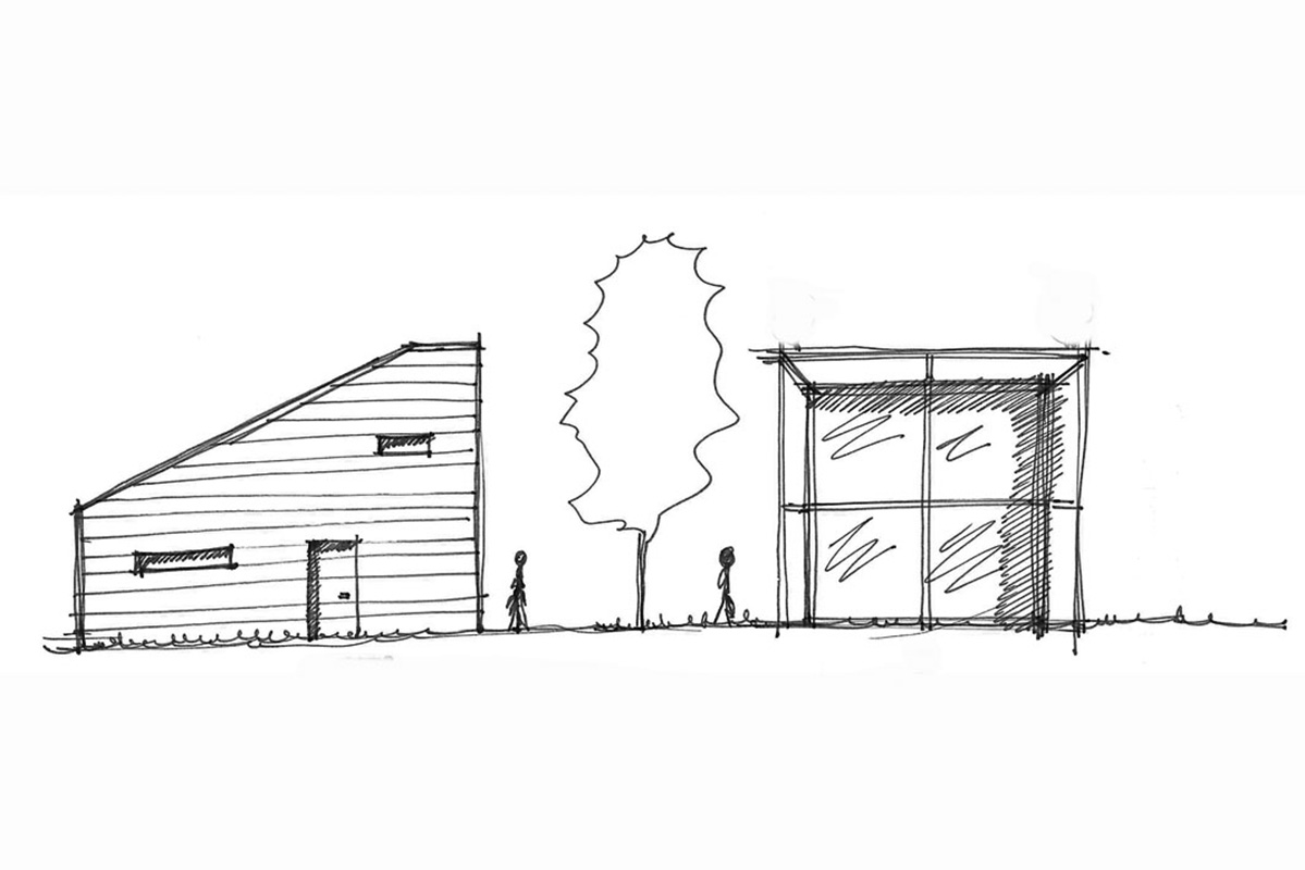 Per questo si è deciso di realizzare un volume semplice e compatto di 500 mc, su due piani, senza sporti della copertura, rivestito di listelli di legno locale e con la facciata a sud interamente vetrata, non solo per cogliere gli apporti solari, ma anche per “compenetrare” la casa nell'ambiente boschivo. Le pareti nord ed ovest, prospettanti su strada e altra proprietà edificata, sono cieche aumentando la privacy e le performance di coibentazione termica.