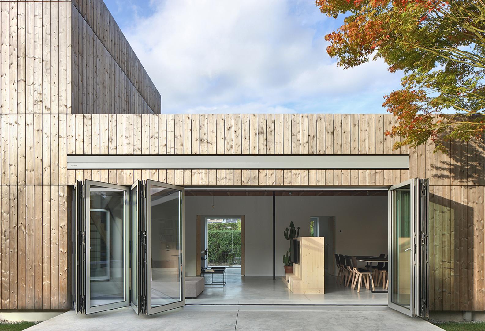 In questo progetto realizzato a Sint-Denijs-Westrem, in Belgio, un bungalow degli anni Sessanta, solitario, con un tetto dolcemente a spiovente è stato ristrutturato e ampliato dagli Architetti dello studio Urbain ac