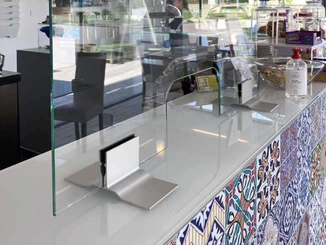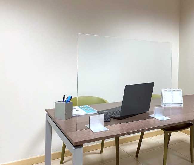 Safe DESK è progettato per reception, scrivanie, tavoli. Utile come schermatura “parafiato” e per salvaguardare la salute delle persone: si posiziona su superfici piane senza l’utilizzo di viti o altro sistema di fissaggio grazie ad un apposito supporto. La soluzione ideale per Uffici, Negozi, Ristoranti, Bar, Farmacie e Banche