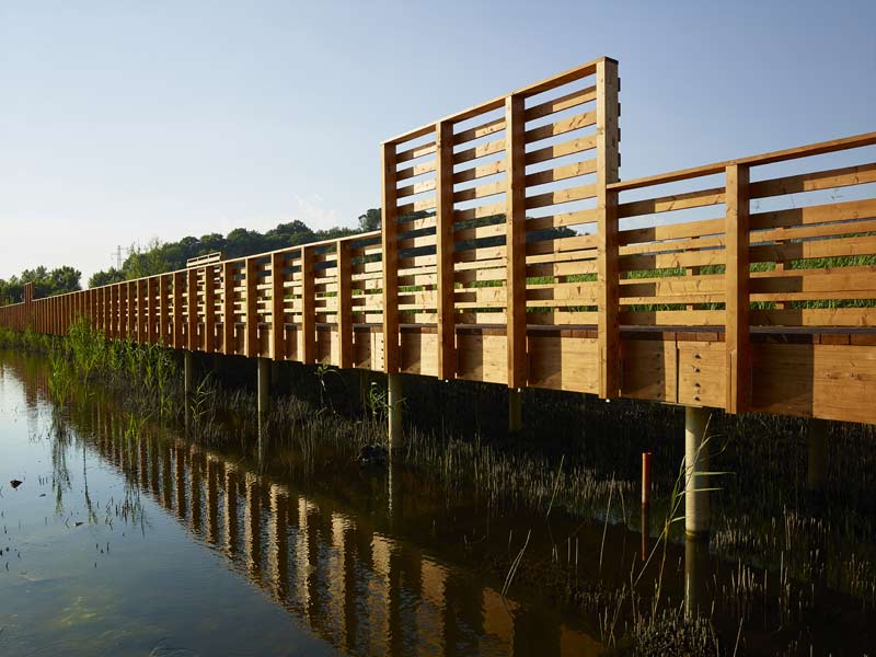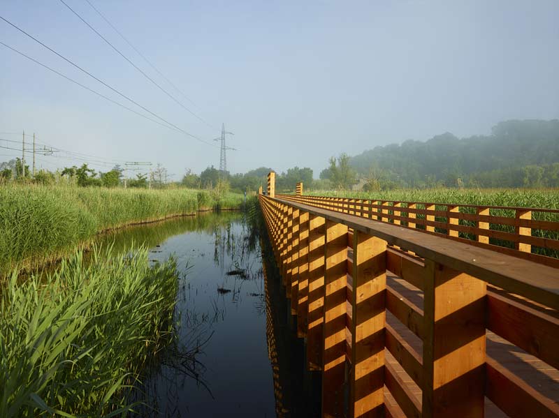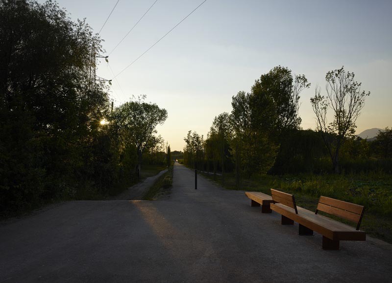 En el corazón de la cuenca norte del Lago Massaciuccoli, el camino ciclista y peatonal "Fior di Loto" saca a la luz un territorio que durante mucho tiempo estuvo oculto y abandonado. Aquí, donde una vez prosperaron los campos de arroz y más tarde los cultivos de loto, se está desarrollando un nuevo capítulo de renacimiento. El proyecto, diseñado por MICROSCAPE architecture urban design AA, restaura la accesibilidad y la dignidad a un paisaje marcado por una urbanización generalizada a menudo carente de espacios de calidad. Integrado en proyectos de exteriores y urbanísticos relacionados con la movilidad lenta y el redescubrimiento del territorio, la pista de 1 km conecta la estación de Bozzano con el centro de Massarosa, convirtiéndose en parte del carril bici dedicado a Giacomo Puccini. Más que una conexión, es un umbral poético: el público vuelve a atravesar un entorno raro, redescubriendo caminos, recuerdos y silencios una vez negados.