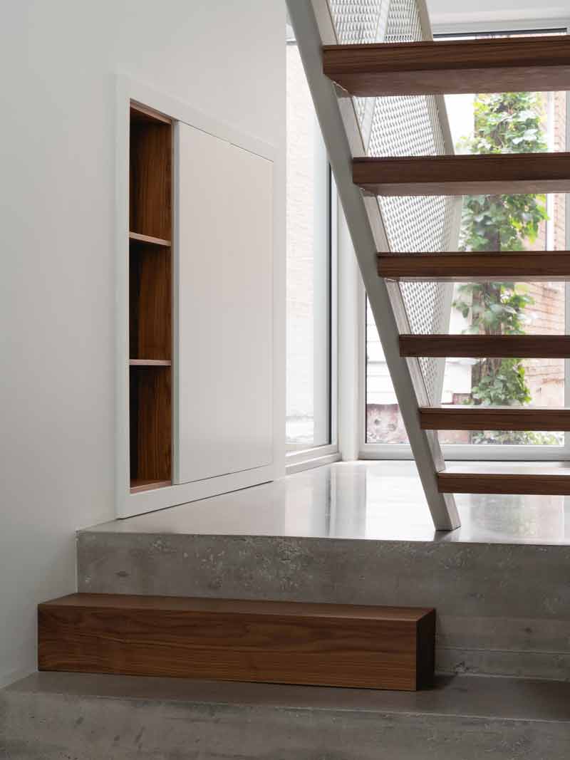 El proyecto realizado por Kenzo Makino & Associates abordó la complejidad de una planta irregular, típica de intervenciones de reutilización y nuevos proyectos de reestructuración, reorganizando las funciones secundarias - como entrada, salas privadas y áreas de servicio - a lo largo de las entrantes y salientes existentes. Esta estrategia permitió racionalizar el diseño y liberar los espacios principales destinados a la restauración.