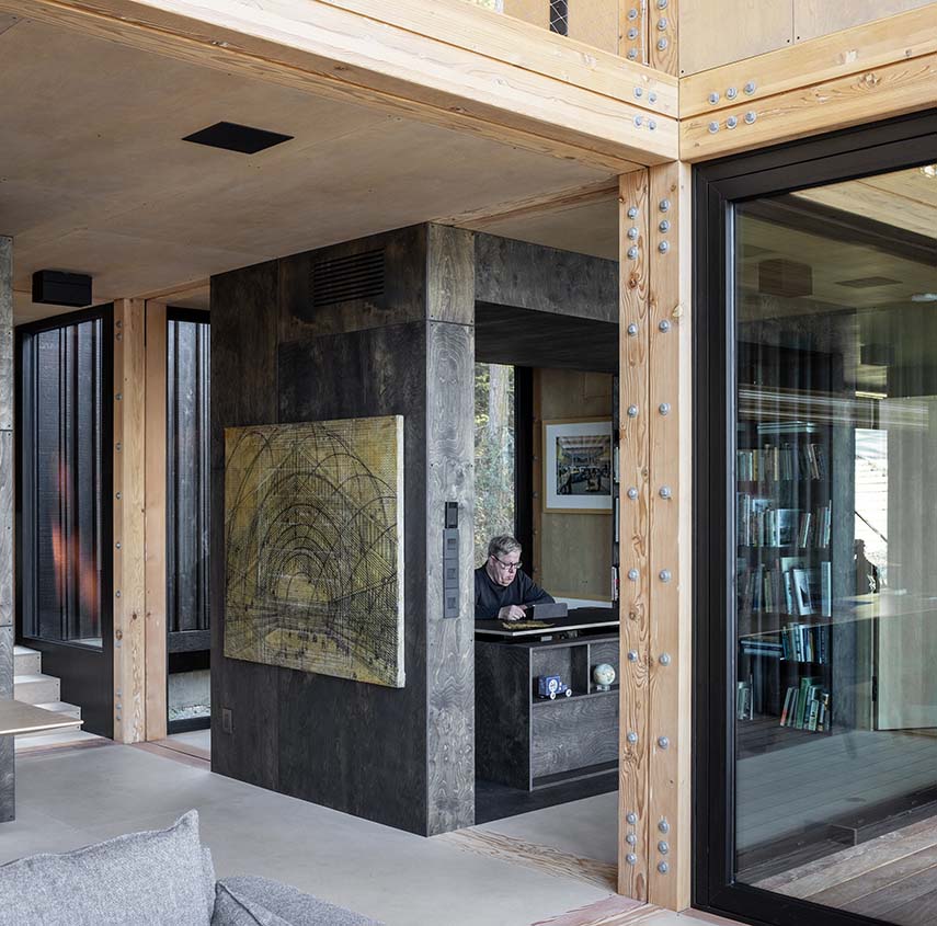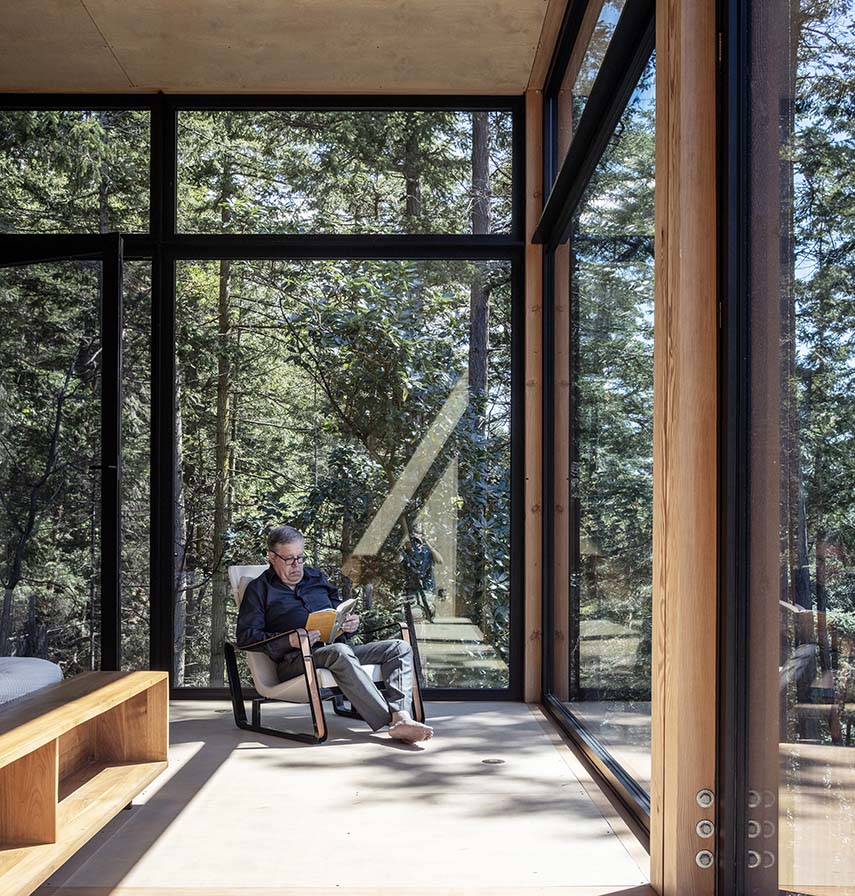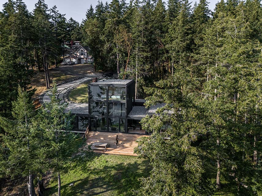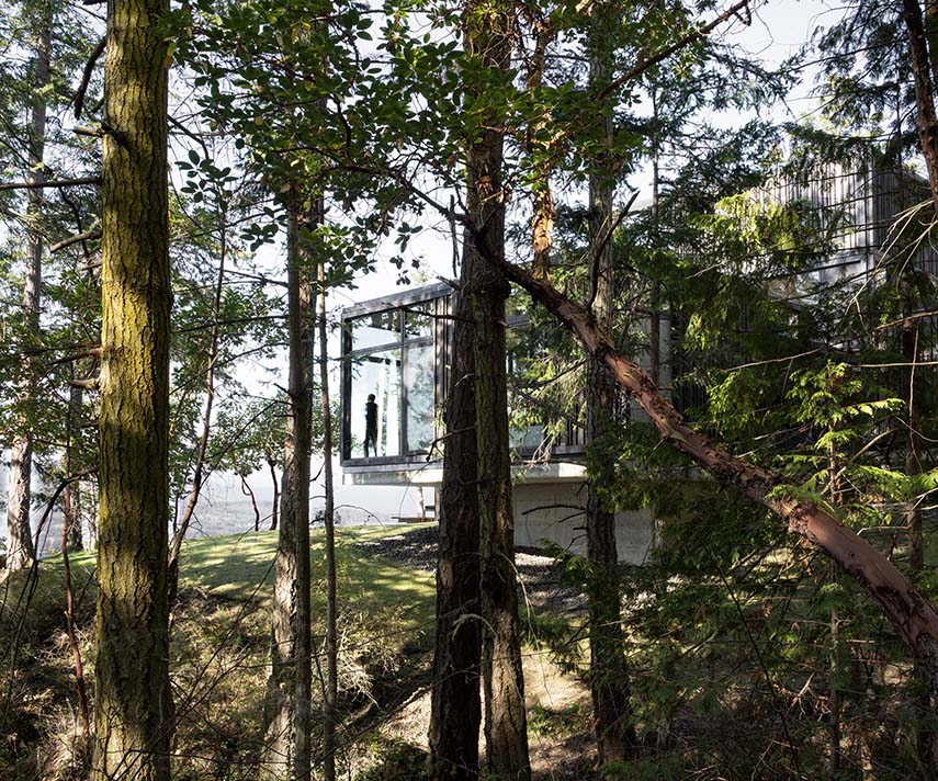 Discovery Bay House nace del encuentro entre el cliente Michael Ross y el estudio Dekleva Gregorič Arhitekti, después de descubrir una de sus residencias frente al océano en Hawái. Michael, con experiencia en Nueva York y Los Ángeles, deseaba una casa que pudiera acoger a su familia y amigos, pero también reflejar una idea precisa de orden y equilibrio. La elección del sitio, con vistas a Discovery Bay y orientación hacia las Montañas Olímpicas, se vuelve crucial: una ligera pendiente hacia el agua ofrece la oportunidad de construir sin forzar el terreno, estableciendo desde el principio un profundo diálogo con el paisaje natural.