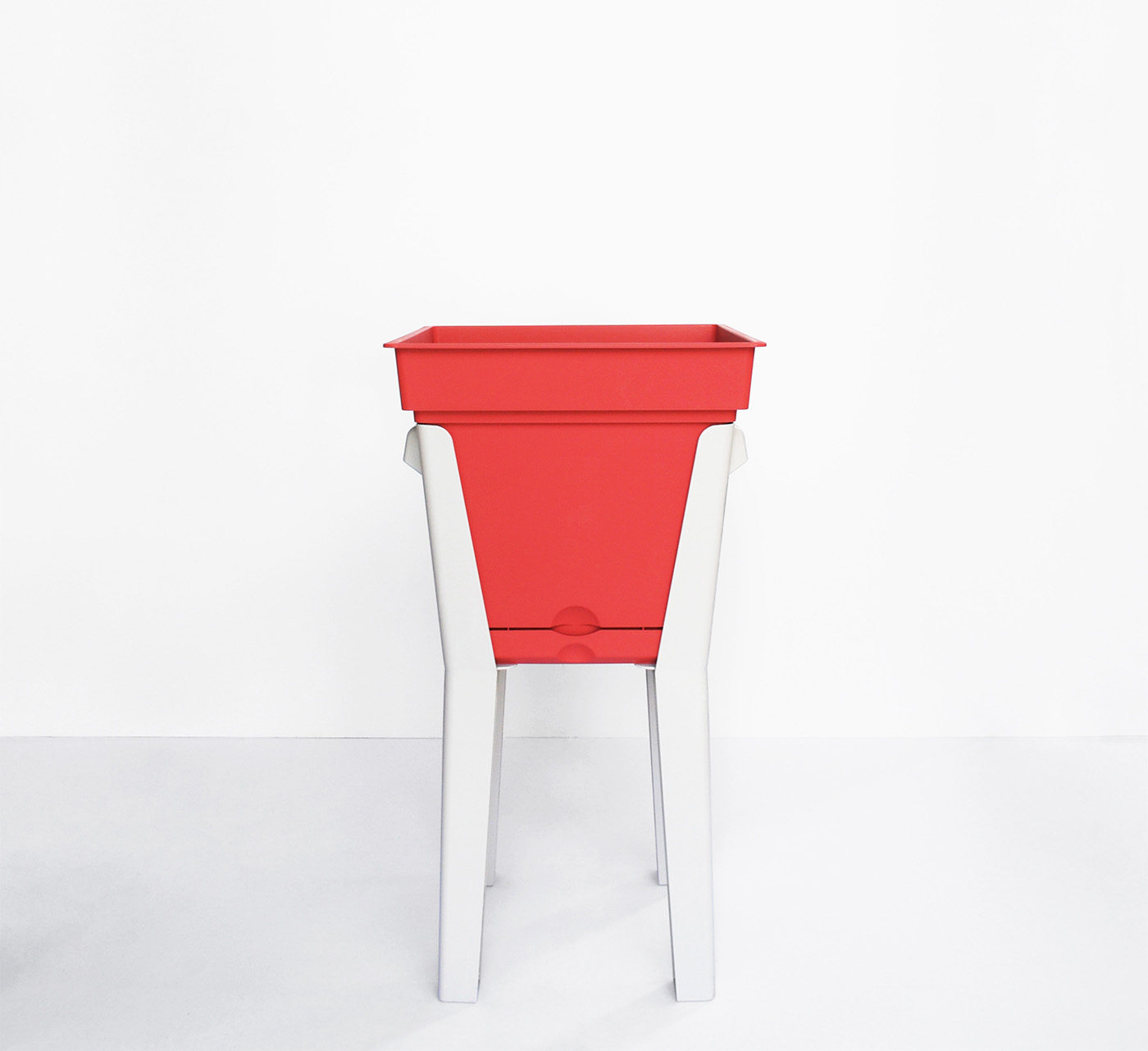 Il progetto è componibile e una volta che le gambe sono applicate al vaso, lo portano ad un'altezza che permette di prendersi cura delle proprie coltivazioni stando in posizione eretta