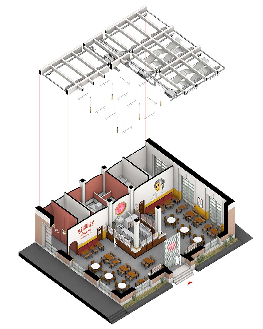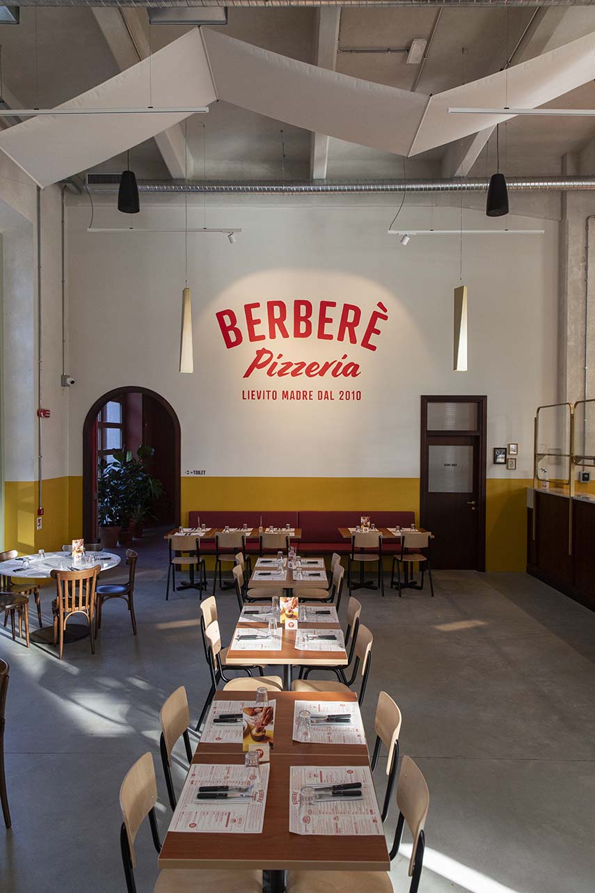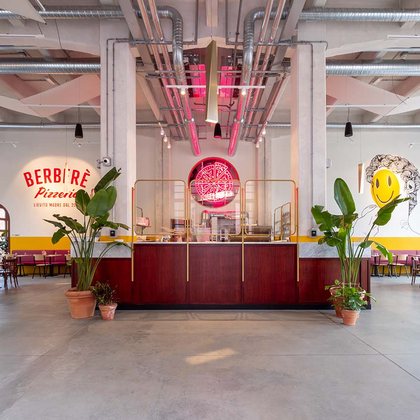 Les pizzerias Berberè combinent l'excellence culinaire et un design accrocheur. Conçus avec soin et dans le respect de l'histoire de chaque espace, ils accueillent et impliquent le client dans une expérience sensorielle qui engage non seulement le goût. Chaque établissement se distingue par son esthétique et ses aménagements uniques, mais unis par des éléments communs : des environnements colorés, une cuisine ouverte, des peintures murales distinctives et des détails pop qui transmettent la philosophie de la marque.