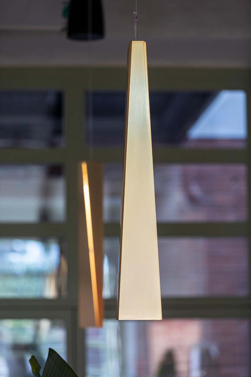 Une mention spéciale est accordée à l'éclairage, Berberè Manifattura Tabacchi a en effet inspiré l'imagination de 9 luminaires, conçus pour l'occasion par Avamposti Architettura et réalisés dans la signature spéciale de la marque Viabizzuno®. Le processus créatif de cet objet d'ameublement spécifique au site part de formes déjà vues dans les structures de l'ingénieur Nervi, dans un dialogue de conception imaginaire, qui valorise encore davantage la grande quantité de lumière inondant la salle avec de précieux jeux de réfraction lumineuse.
