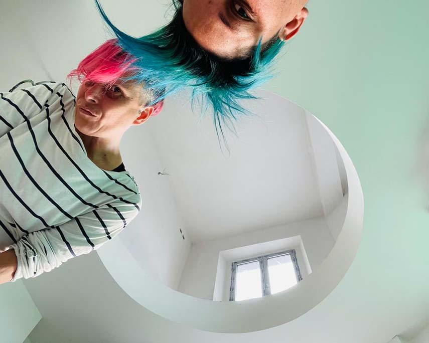 Dès le premier Berberè à Castel Maggiore, ayant toujours eu la plus grande liberté d'expression, nous avons choisi comme moyen d'expression le dessin et la peinture, car nous pensons que ce sont les moyens qui nous représentent le mieux et nous laissent la plus grande liberté d'intervention à l'intérieur des locaux. Au fil du temps, stimulées à chaque fois à repousser les limites, à la fois par Samantha, Salvatore et Matteo, nous ne nous sommes pas contentées de peindre uniquement sur des murs définis, mais nous avons créé des pièces à 360 degrés, nos dessins ont grimpé sur les plafonds, sont descendus sur les miroirs et montés sur les murs, les escaliers, dans une ambiance site specific, que nous pensons nous distinguer.
