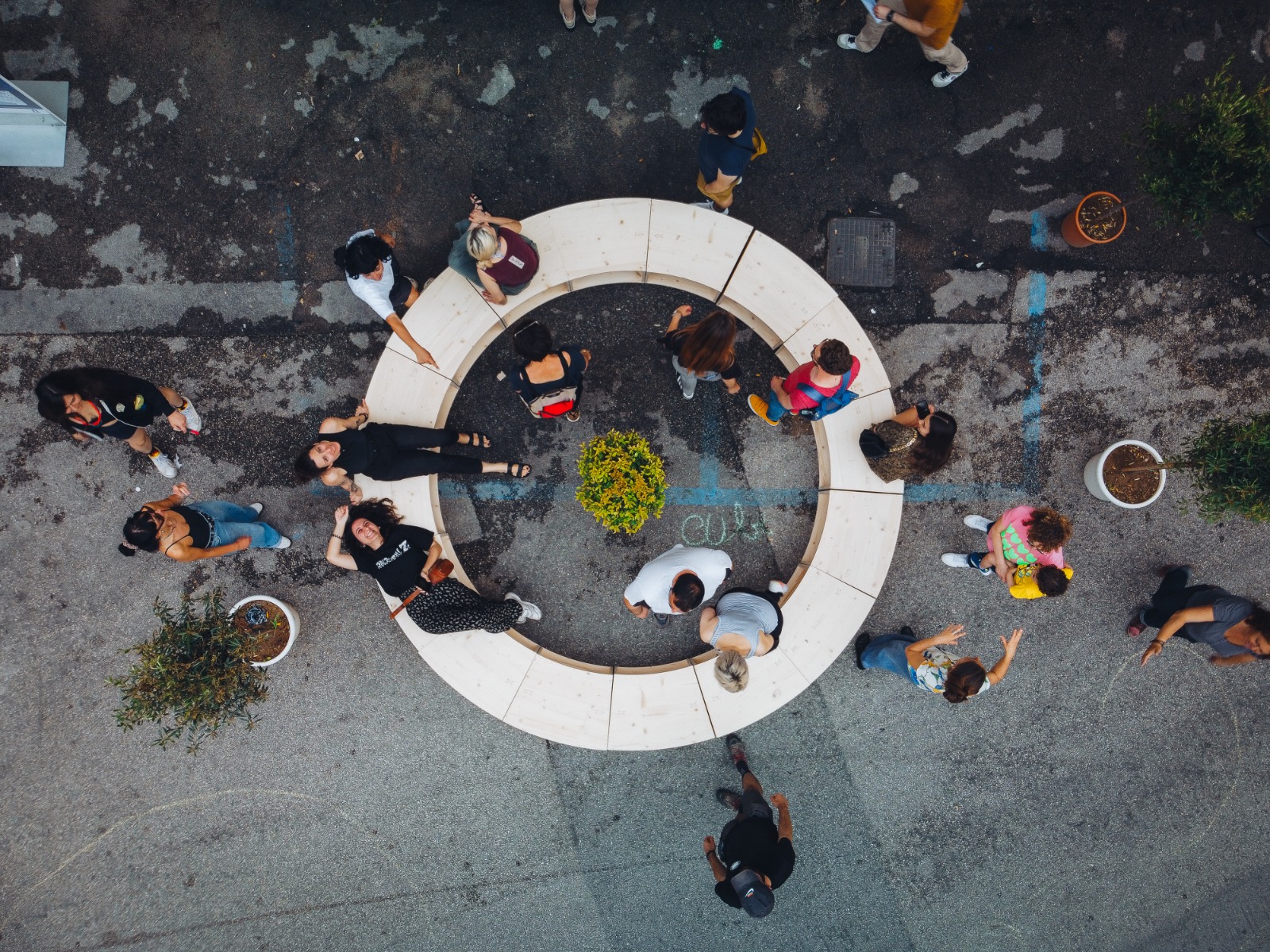 Bonjour! Blam est essentiellement né d'un besoin. En tant que jeunes diplômées en architecture et citoyennes actives, nous avions le désir de nous sentir utiles et de donner un but à notre travail. Il ne suffisait pas de s'occuper de conteneurs vides sans prêter attention au contenu : les personnes qui habitent et font vivre les lieux. Ainsi, dans un océan d'incertitudes et une vague d'enthousiasme, en 2018, nous avons adopté ce son onomatopéique, Blam, avec lequel nous voulions reproduire le bruit d'une porte qui s'ouvre, le fracas de quelque chose qui se brise et s'impose ; une sorte de sonnerie capable de refléter un changement dans nos vies professionnelles, mais aussi l'effet perturbateur que nous souhaitions générer sur les territoires où nous allions travailler.