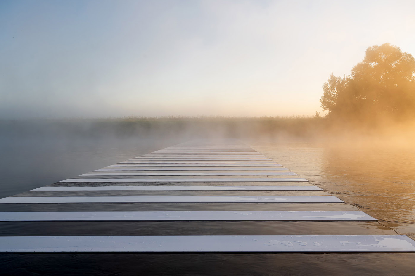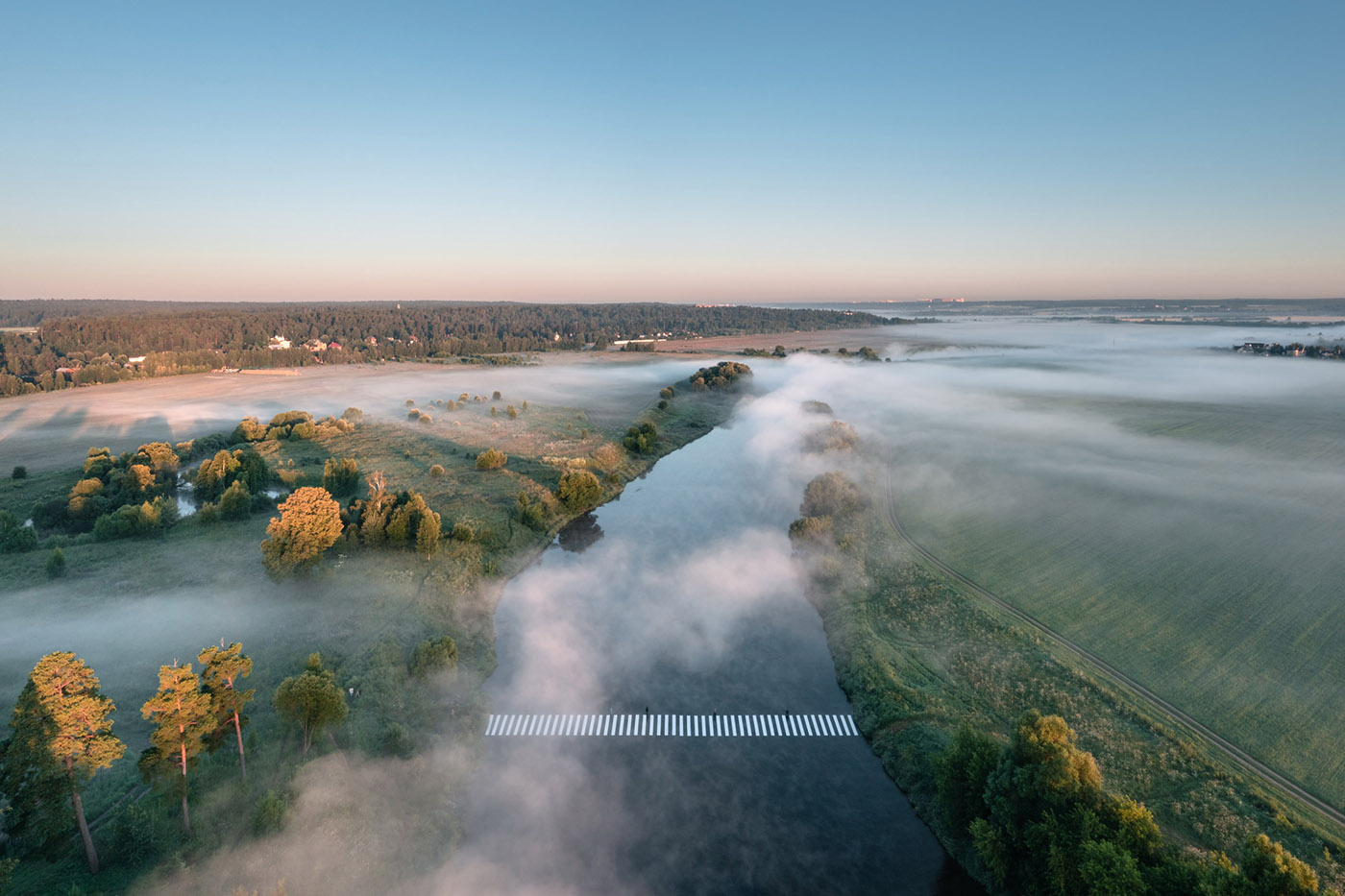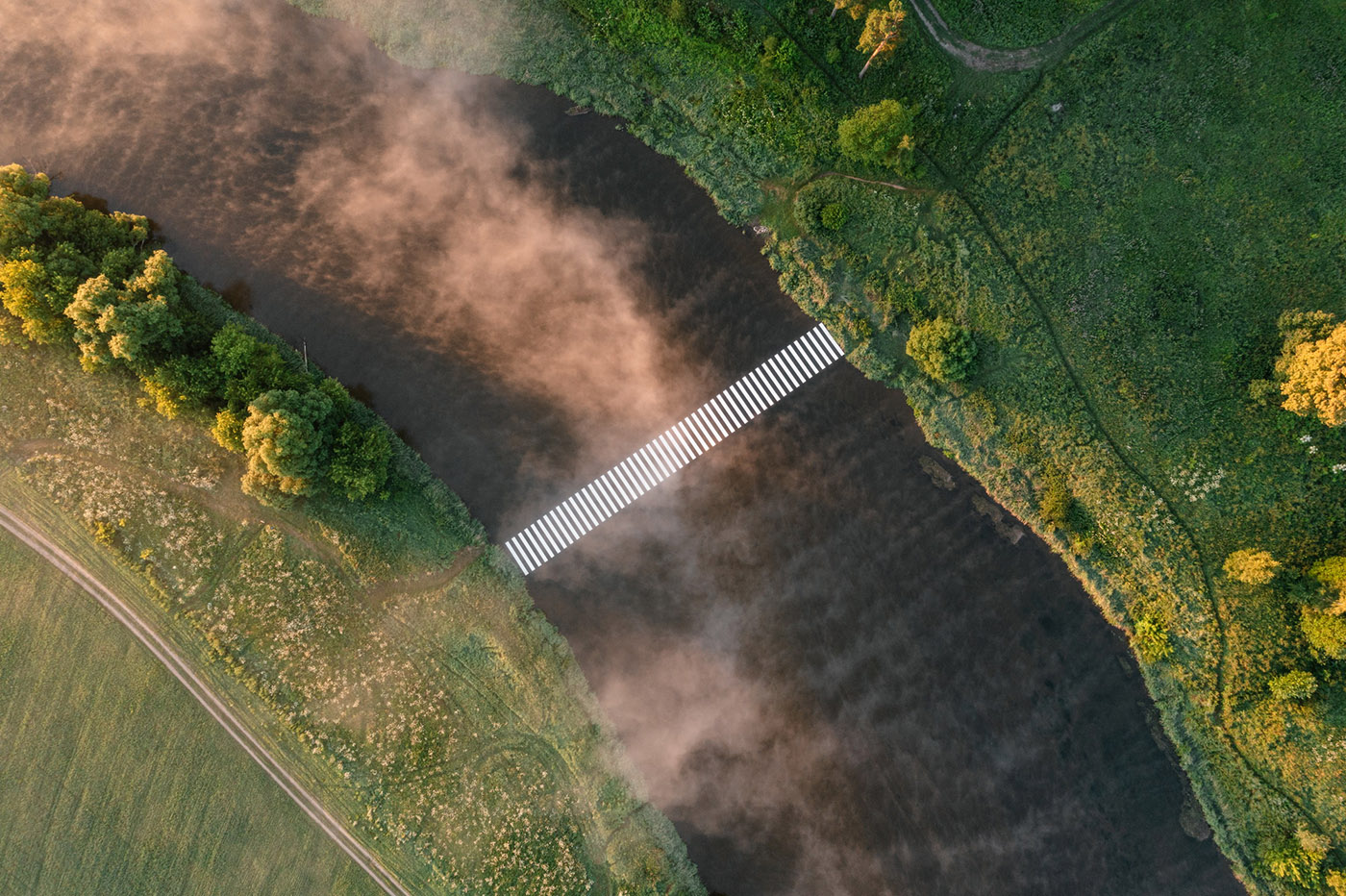 Crossroads de Gregory Orekhov, réalisé en polycarbonate et peint avec de la peinture de marquage, est une traversée à travers la rivière, parmi des champs qui semblent n'avoir aucune fin. Cet objet d'art terrestre est situé dans la région de Moscou, dans la zone de Nikolina Gora. Avec cette œuvre, l'artiste soulève la question du comportement social, éthique et environnemental.