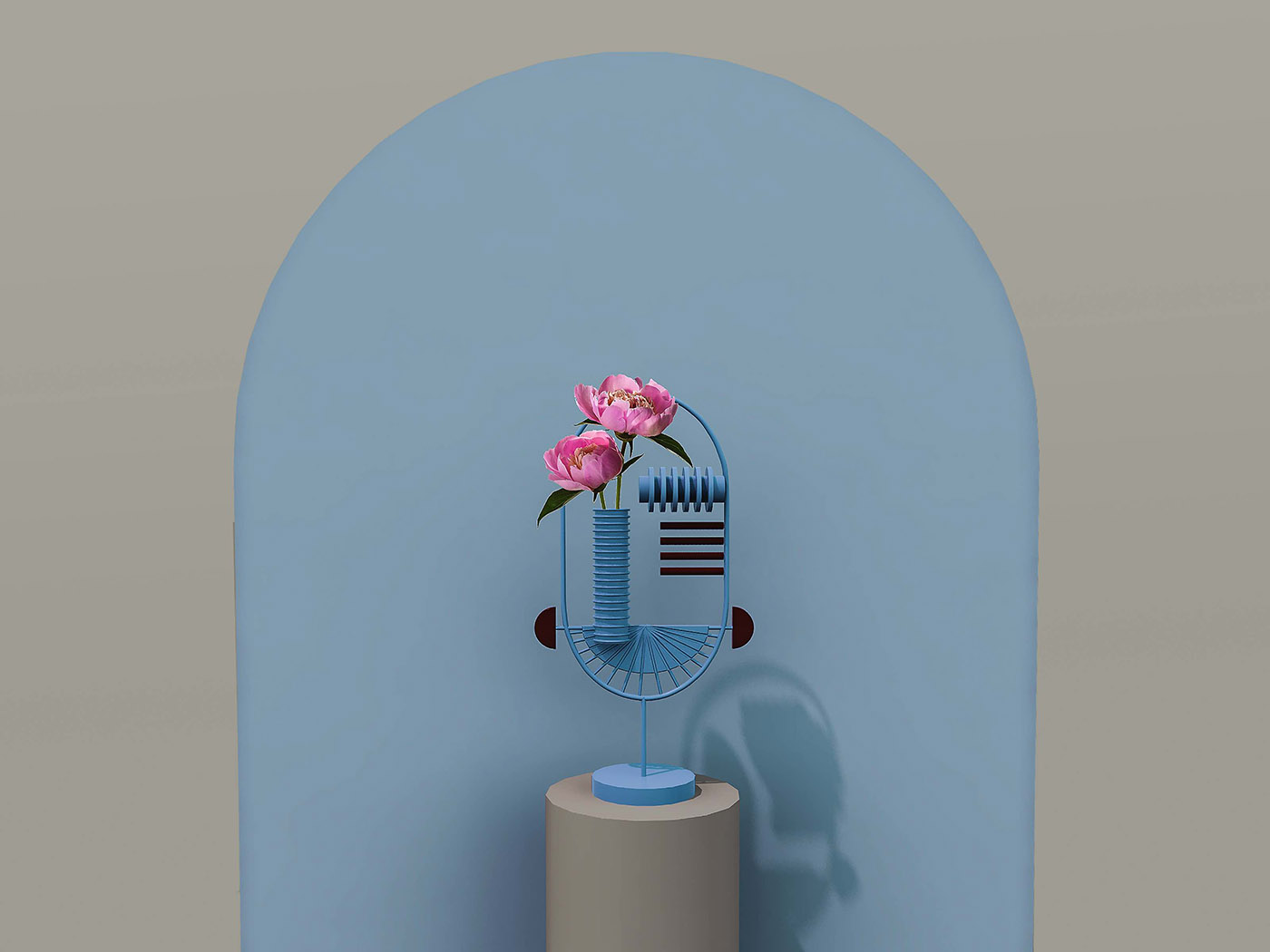 Les deux mini-vases sont fabriqués en acier laqué et en bois MDF et laissent place à une seule fleur et, tout comme les miroirs, remplissent l'espace comme des œuvres d'art avec un clair référence aux œuvres abstraites
