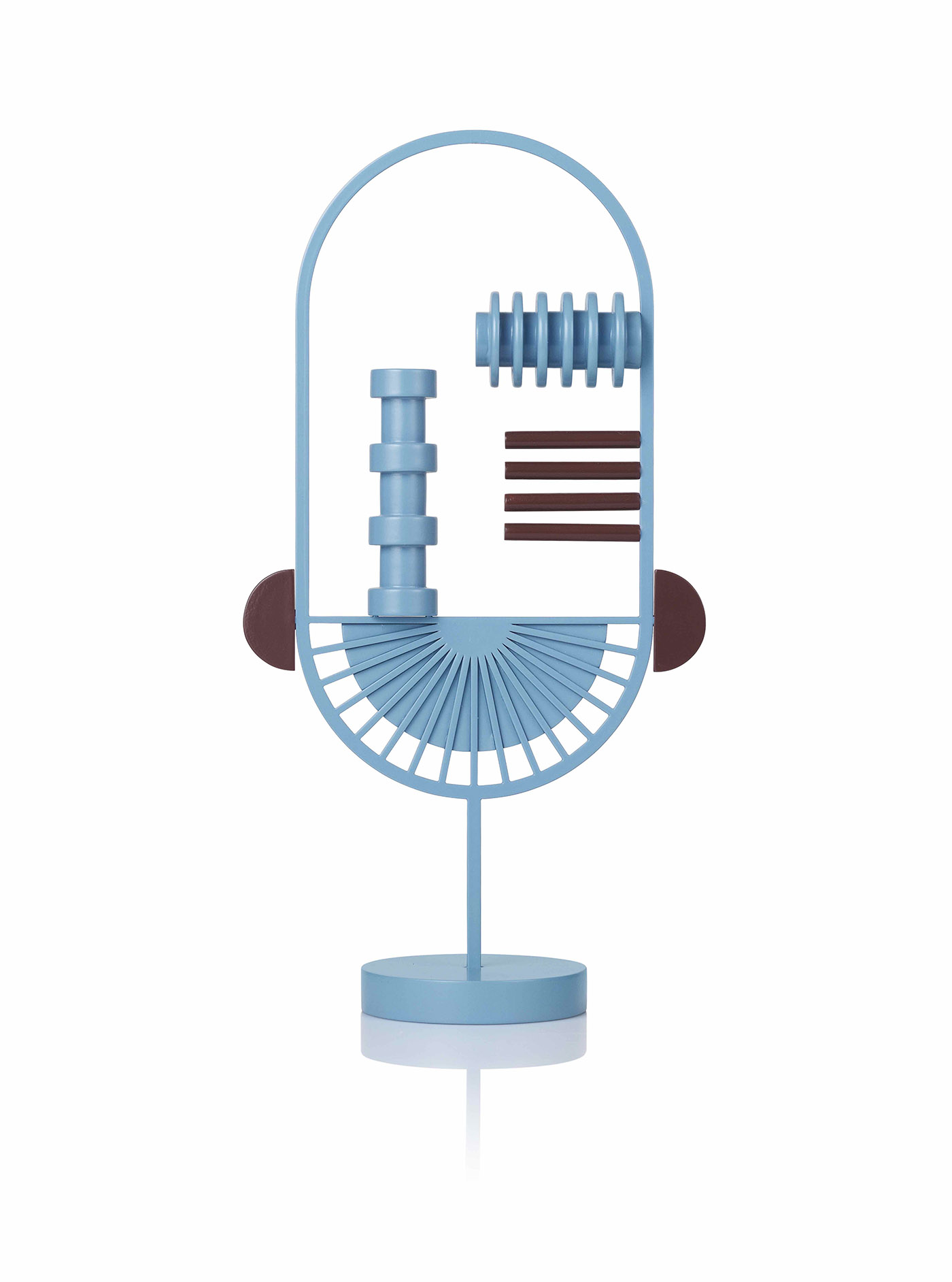 La collection de miroirs et vases MASQ est facilement confondue avec des œuvres d'art abstrait. Ce sont des masques d'inspiration précolombienne avec une fonction décorative qui stimule l'humour dans l'environnement, mais lorsqu'on les observe de près, leur fonction pratique est également révélée: deux miroirs, la figure féminine AMAM et la figure masculine APAP, et deux vases pour une seule fleur, RISUS et ONAM