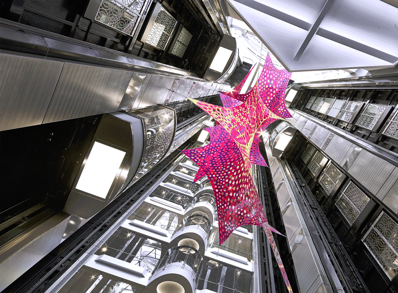 Aluminium leather suspended in the lobby of a Cruise Ship. Extraordinary lightness