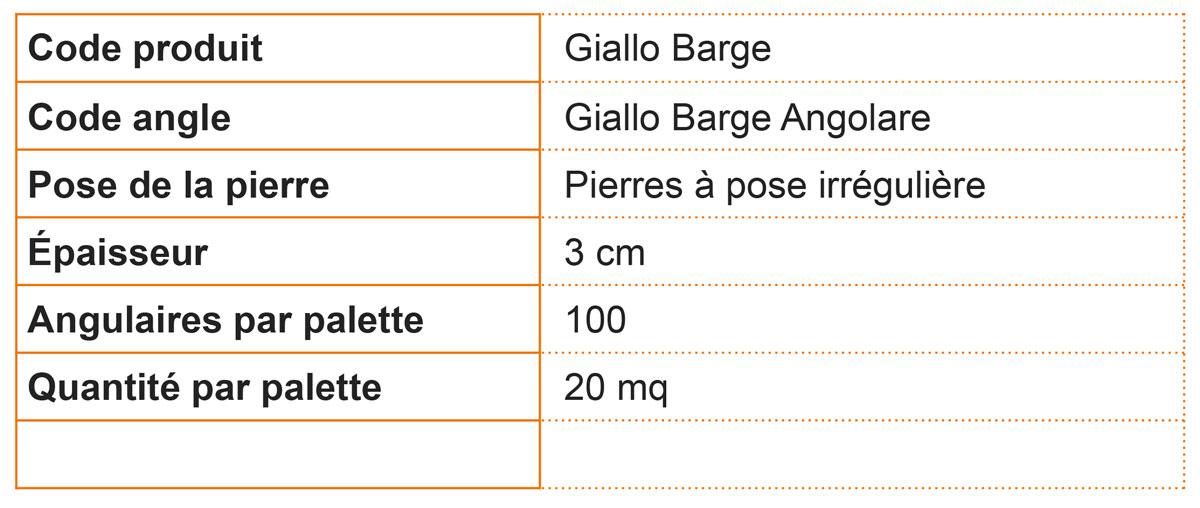 Extrêmement résistante au gel, à l'humidité et aux écarts thermiques, la pierre Giallo Barge s'adapte aussi bien aux environnements rustiques qu'aux projets contemporains, conservant toujours une forte valeur esthétique. Elle apporte dans les espaces une touche d'authenticité et de raffinement, idéale pour les extérieurs et les intérieurs de qualité.
