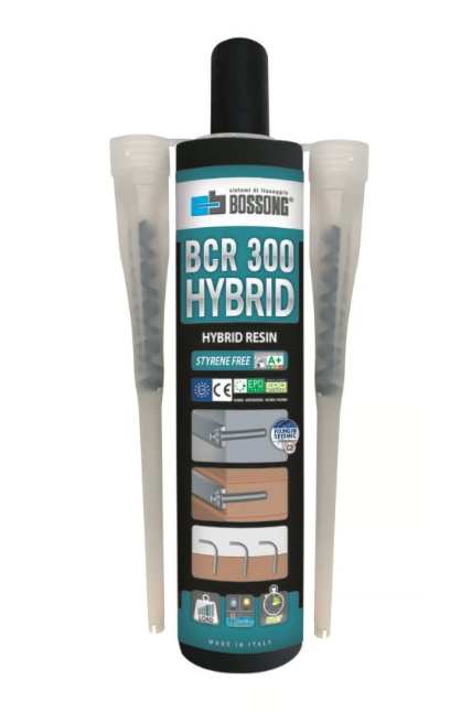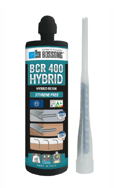 HYBRID est un ancrage chimique bi-composant hybride sans styrène, conçu pour supporter des charges moyennes/élevées. Il est marqué CE et qualifié ETA pour les fixations dans le béton.