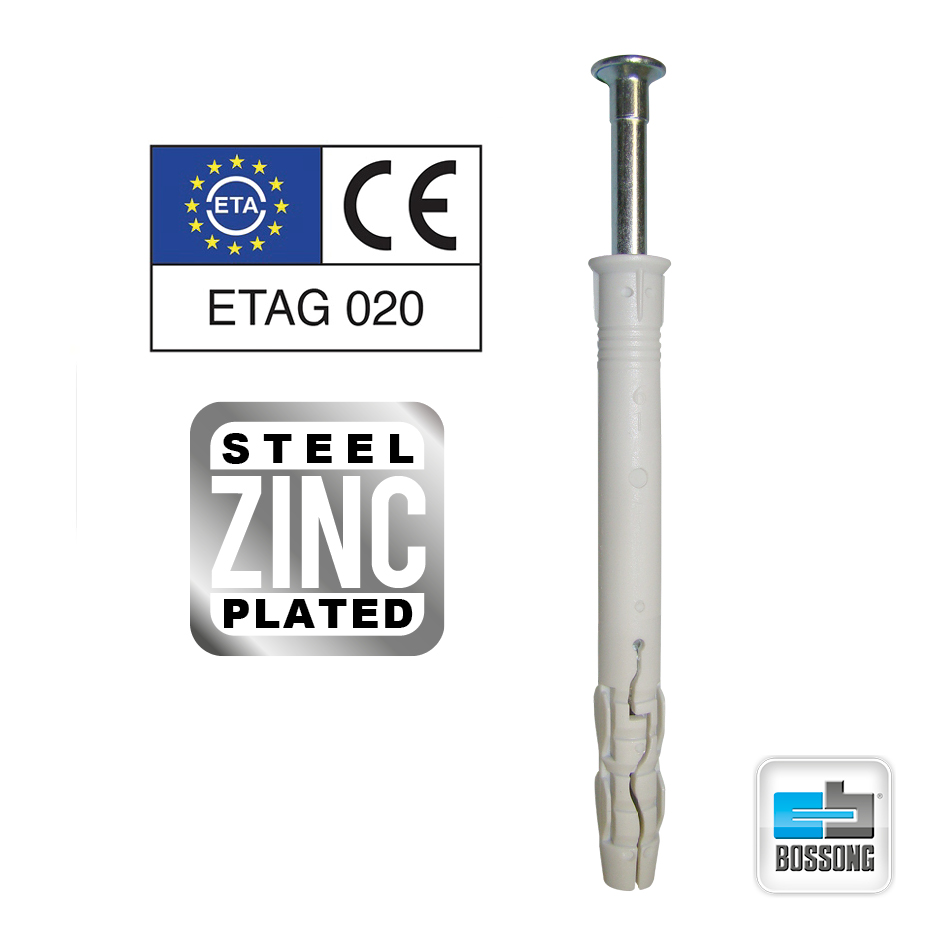 JNS-P. Cheville Bossong en nylon. À percussion, tête fraisée.