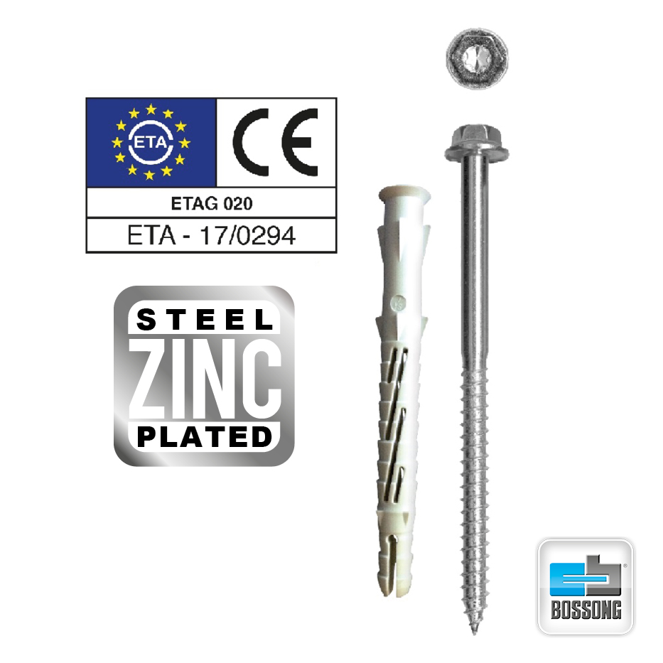 JNI-MET. Cheville Bossong en acier zingué jaune pour fenêtres.