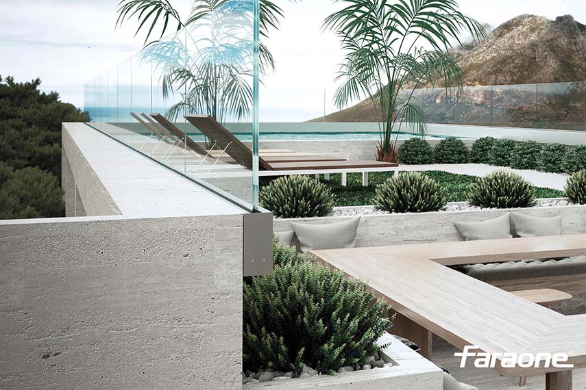 Garde-corps en verre avec fixation latérale interne
