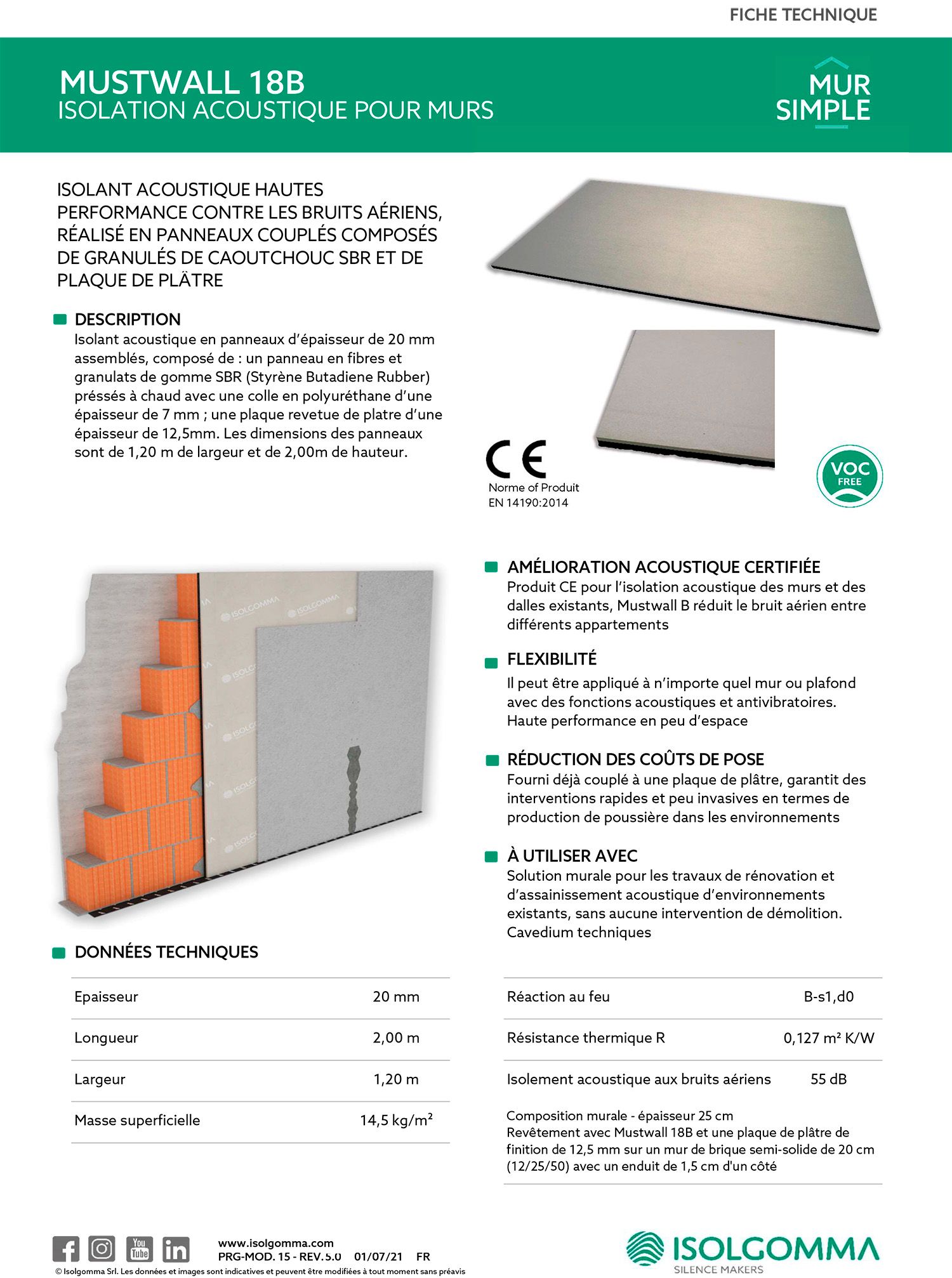 Isolation acoustique élevée combinée à facilité de pose et durabilité et stabilité dans le temps sont les principales caractéristiques du Mustwall 18B.