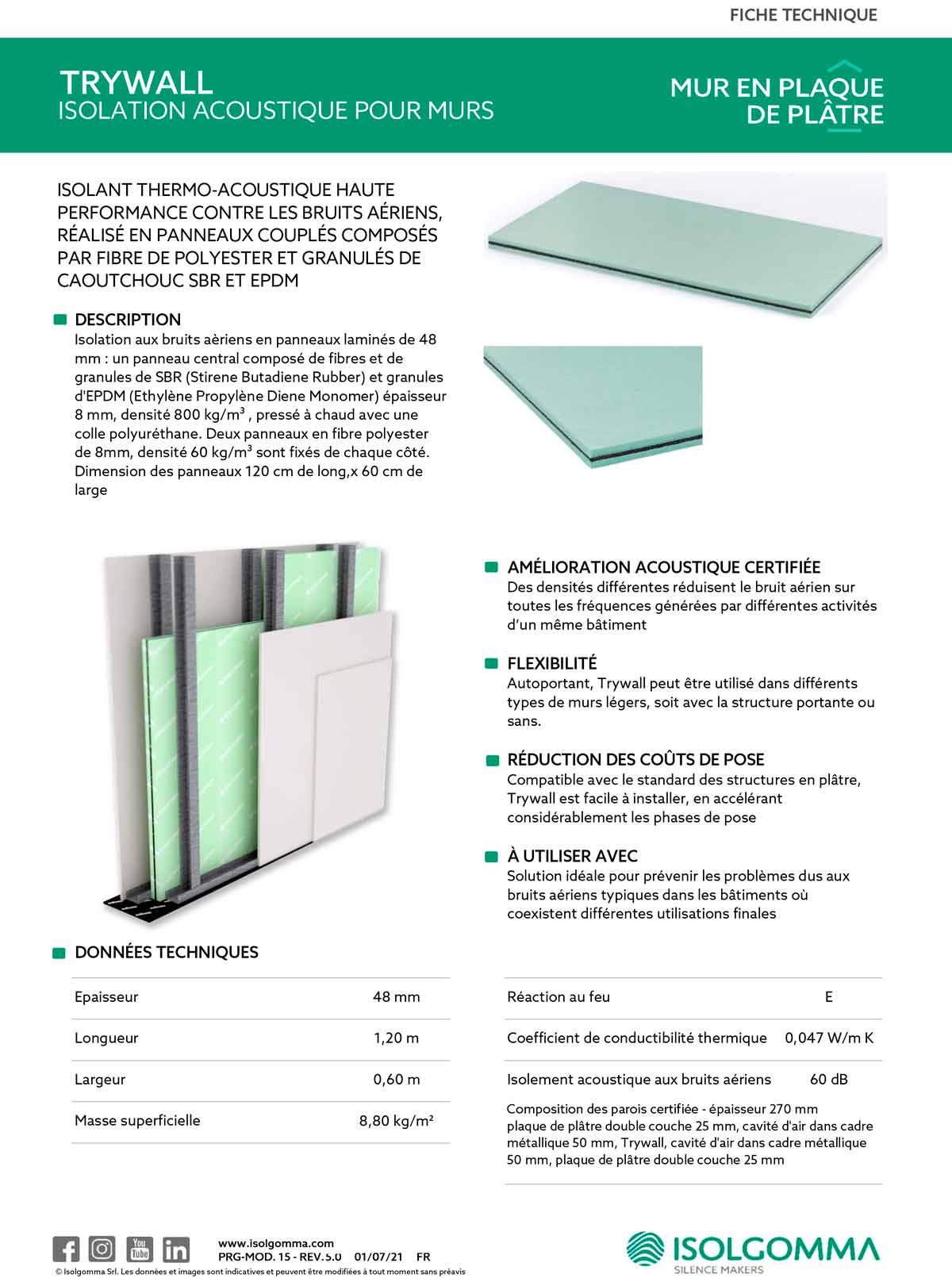 Hautes valeurs d'isolation thermique et acoustique, haute résistance à l'humidité et à la condensation combinées à une extrême facilité de pose sont les principales caractéristiques du panneau Trywall 48.