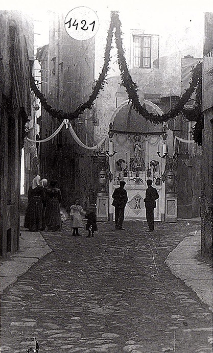 Scenografia ricavata dalla demolizione di un edificio. Contrafforti e mattoni a vista