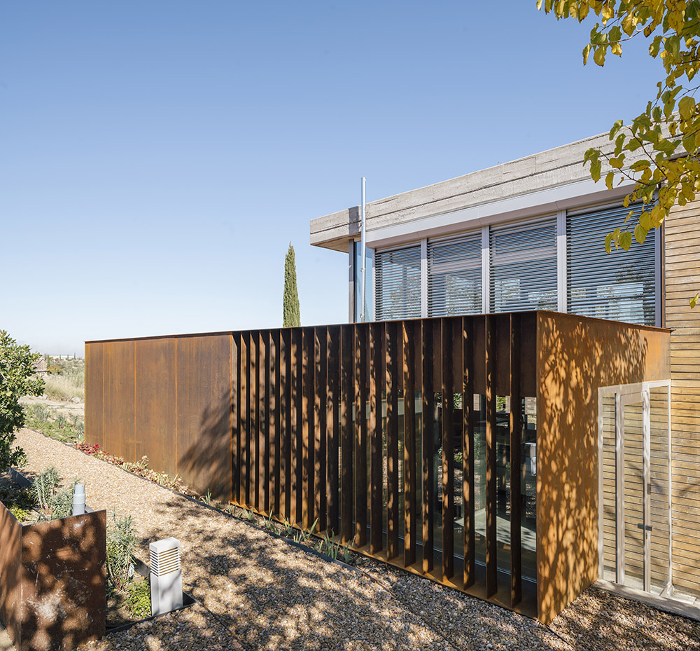 Le projet, réalisé par le studio delaVegaCanolasso, situé à Tolède, en Espagne, est composé de deux volumes : le premier, une maison à l'architecture simple et élégante, résultat d'une rénovation, et le deuxième, un module en acier sur mesure préfabriqué.