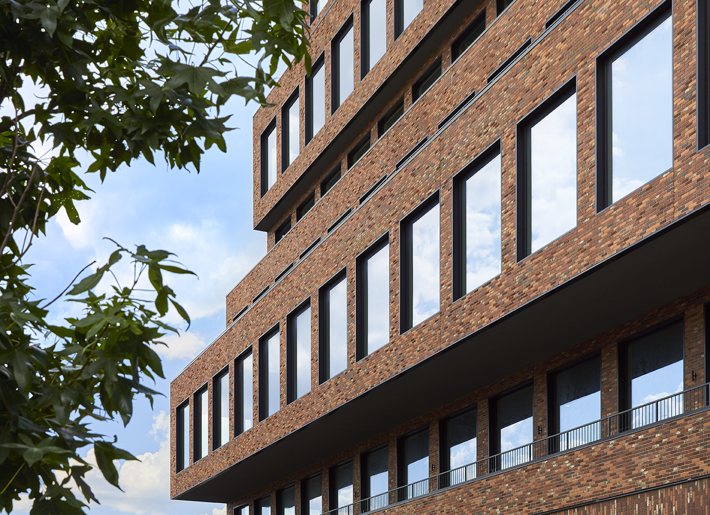 Para crear un vivaz centro público, una calle peatonal bordeada de tiendas pasa directamente por el centro del edificio. Una pasarela conecta lushwick Inlet Park con la cercana plaza del hotel William Vale. Lo que una vez fue un paseo marítimo industrial ahora se ha transformado en un vecindario transitable de parques y espacios públicos. Las tiendas, cafeterías y restaurantes de la planta baja ofrecen espacios sociales