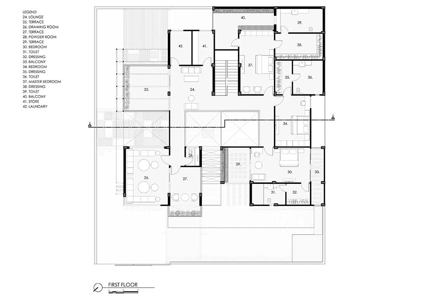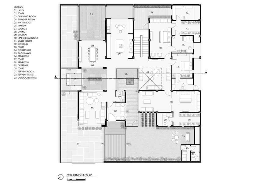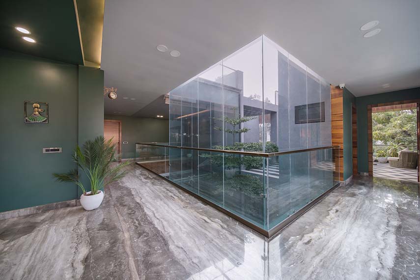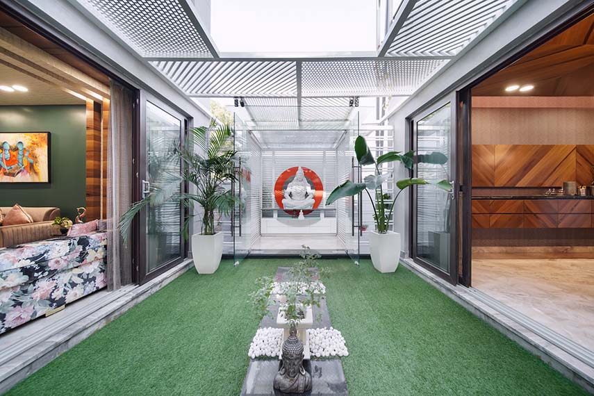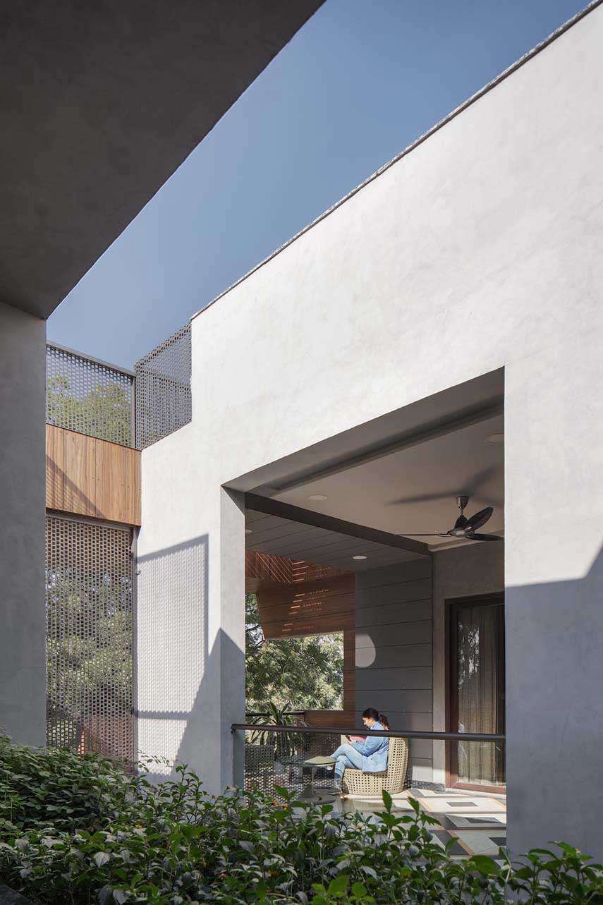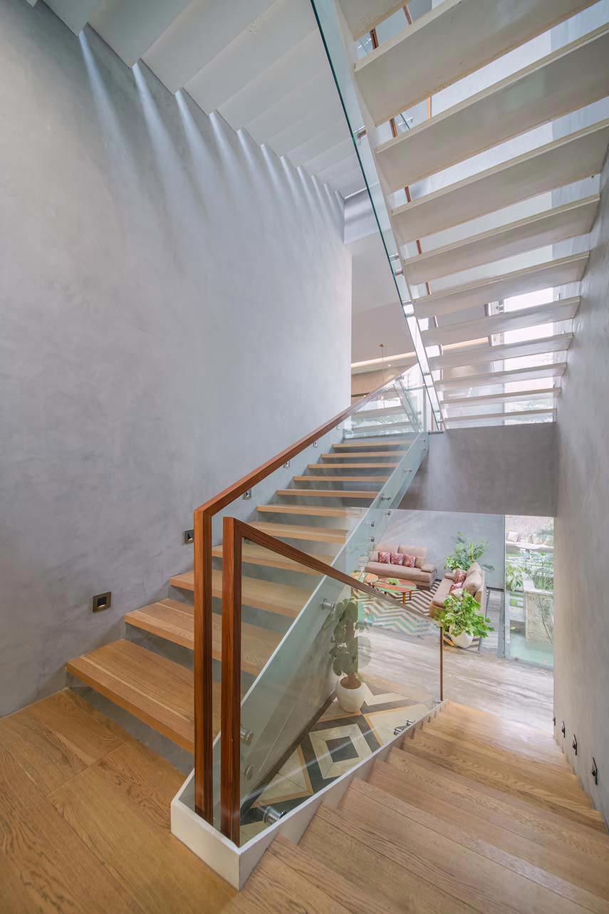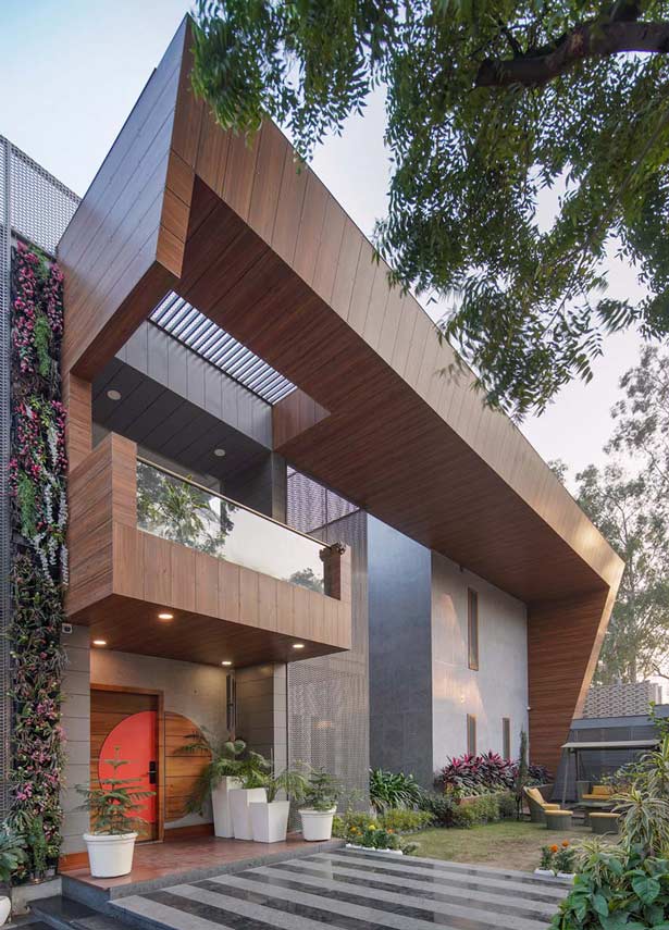 Pour les clients, les objectifs du projet pour leur nouvelle maison étaient la sécurité et l'intégration des principes Vastu de libre circulation de l'énergie vitale à travers l'harmonisation de l'espace avec les 5 éléments de la nature et la géométrie sacrée. Les architectes du Studio AVT aborde tous les projets d'architecture qui leur sont confiés de manière "profondément personnelle" (Studio AVT) et hautement professionnelle, créant Aaroh: un univers intime et sécurisé, tout en étant riche en expériences spatiales multiples et diverses
