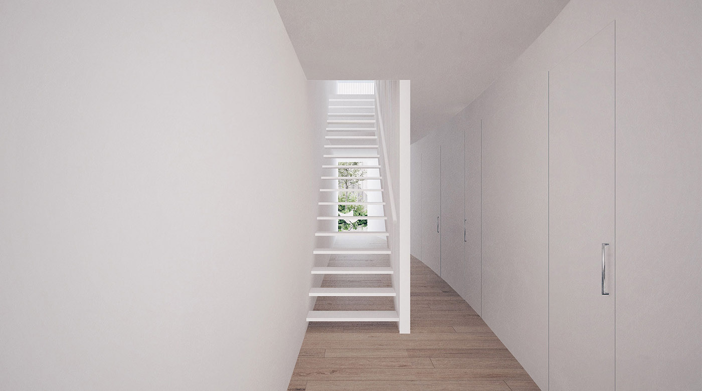La proposta degli architetti è stata quella di un'aggiunta di due piani, con camere da letto al piano terra, un'ampia zona giorno centrale e un rifugio per i genitori nell'ultimo piano, con una terrazza su tetto, il tutto collegato da una scala aperta e luminosa