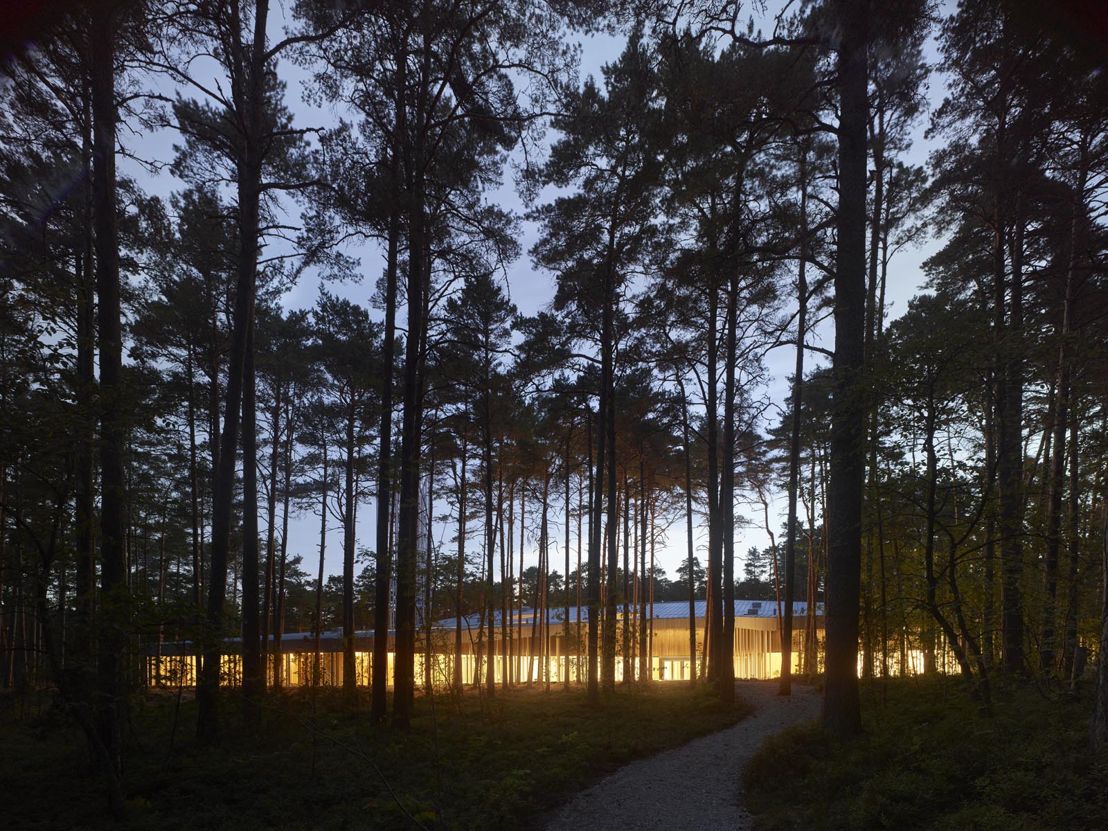 Centre Arvo Pärt au milieu d'une forêt de pins. Lien entre la musique et l'architecture