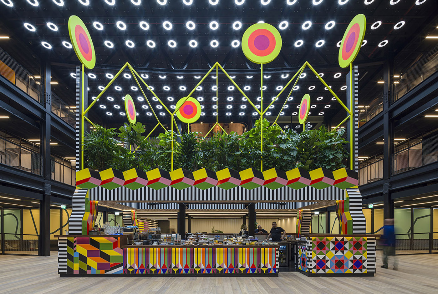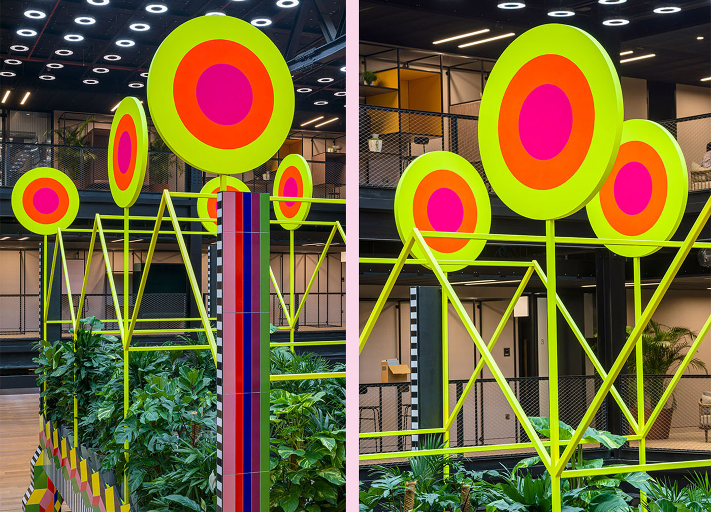 Le point focal des installations artistiques est l'extrêmement coloré Atoll qui encourage le public à emprunter le nouveau parcours récemment inauguré. Le niveau inférieur de Atoll abrite un café tandis que le niveau supérieur reprend le profil de trois maisons de ville londoniennes. C'est la ville de Londres qui a inspiré Morgan Myerscough, ayant vécu toute sa vie là-bas.