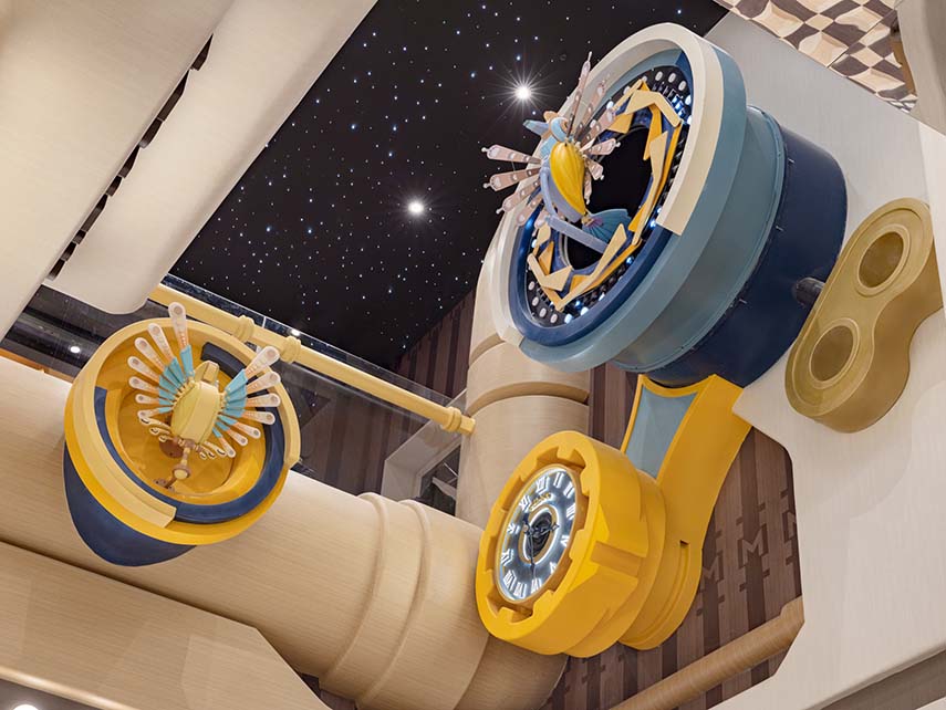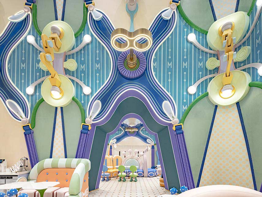 Espaces thématiques surréalistes complétés par de l'aromathérapie et de la musique pour satisfaire tous les sens