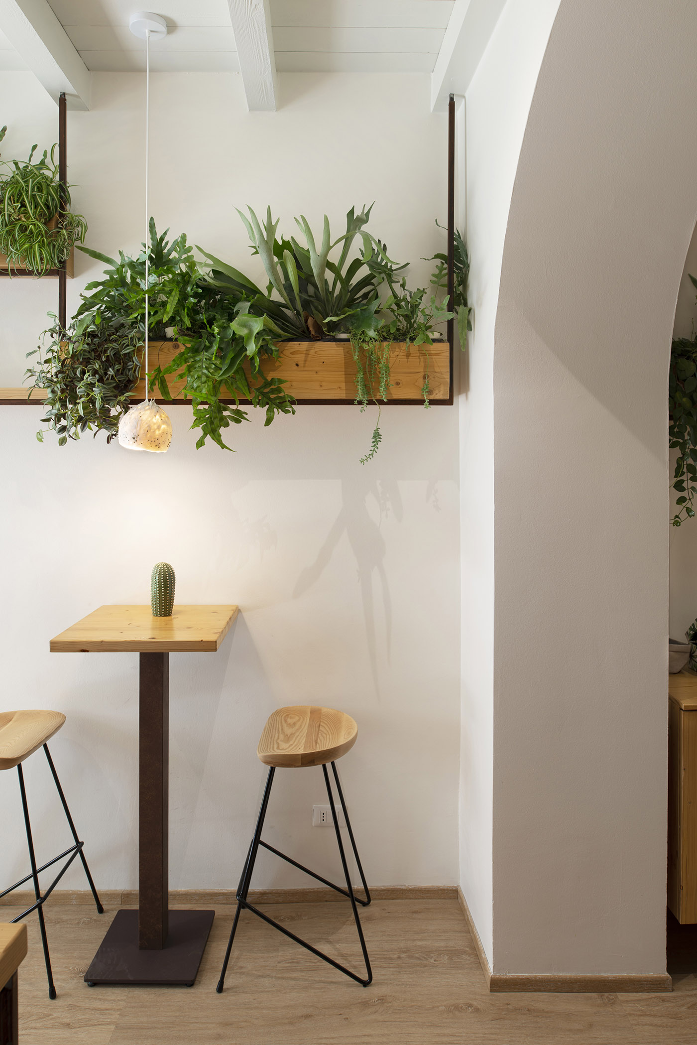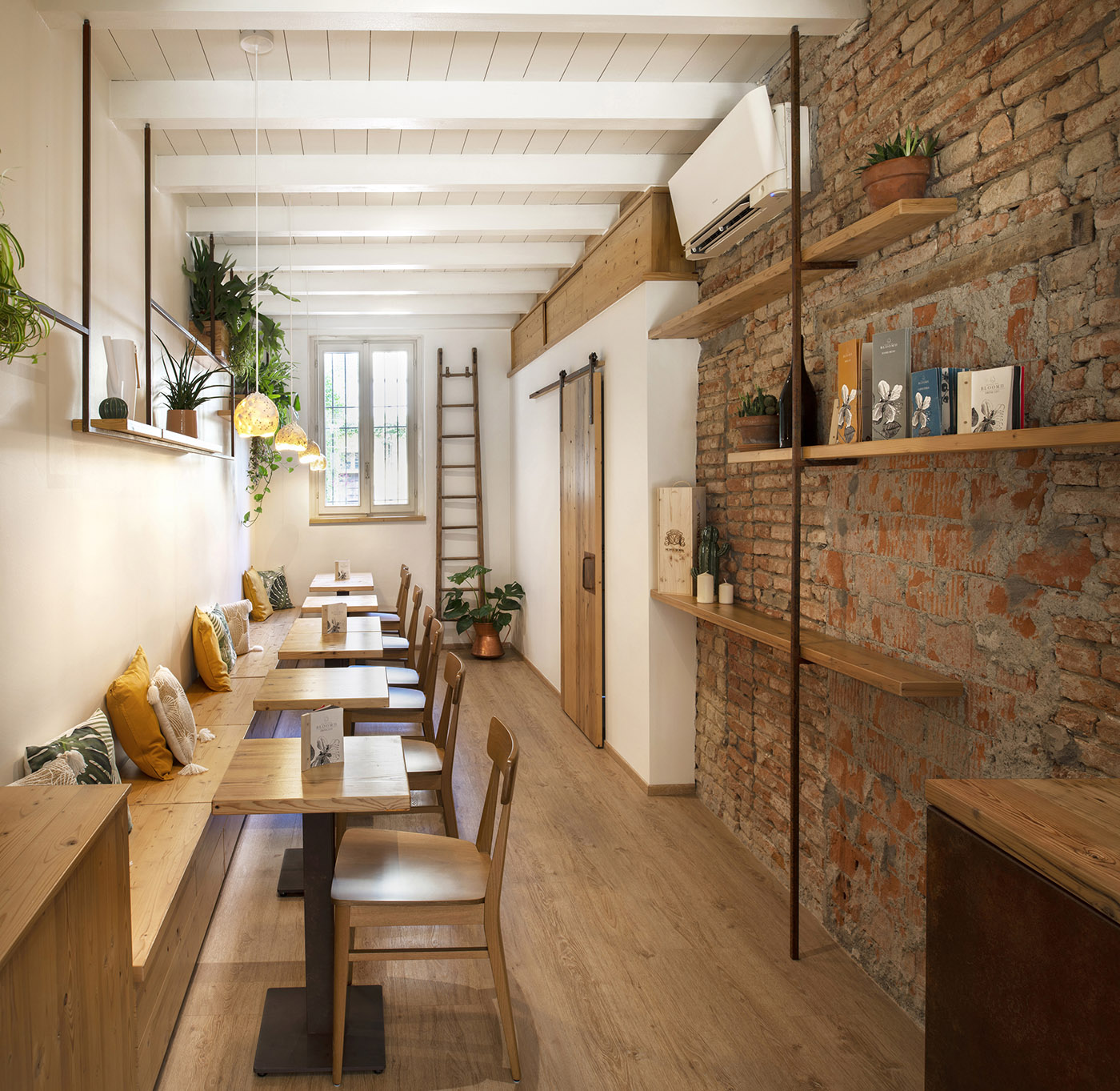 Le projet du Bloom 33 Botanic Bar, conçu par l'architecte Davide Beretta, s'inspire de la philosophie du commanditaire : offrir une expérience multisensorielle qui allie le plaisir de la convivialité au respect de la nature. La nature, en cohérence avec le nom de l'établissement, fait partie intégrante de l'aménagement des espaces intérieurs. Dans des projets de design intérieur comme celui-ci, l'attention portée à l'environnement se traduit par des choix concrets : l'élimination des produits et contenants en plastique et l'utilisation de matériaux naturels pour les meubles, tels que le bois de sapin vieilli et le fer oxydé, valorisent à la fois la durabilité et l'esthétique.