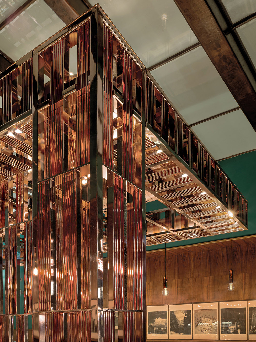 Les nouveaux éléments de valeur, tels que le cuivre, le verre et le marbre, dialoguent avec les parties historiques et sont fortement caractéristiques. Un élément en cuivre rose, de forme en L inversé, contenant les installations, allie design et fonctionnalité et est l'absolu protagoniste.
