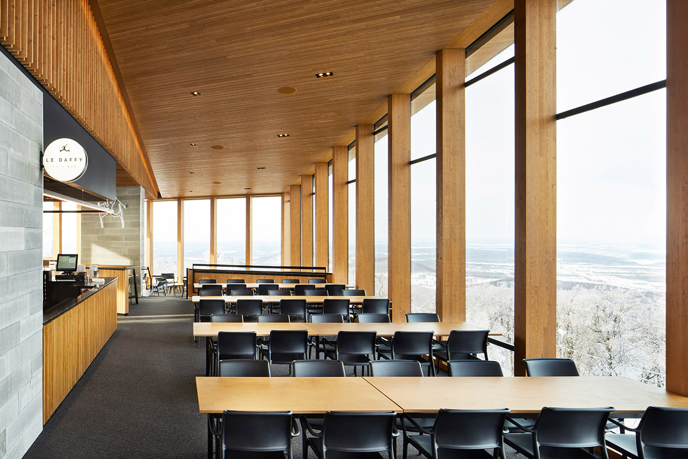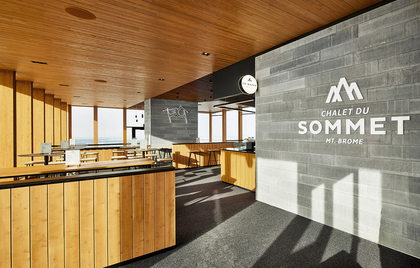 Au sommet du Mont Brome, le Chalet du Sommet Bromont se présente comme un lieu de repos, de contemplation et d'immersion dans la nature. L'un des projets d'architecture de Lemay, ce refuge contemporain est le résultat d'une profonde réflexion sur la relation entre paysage et architecture. Le design préserve l'intégrité du contexte naturel, en respectant la forme de la montagne et en valorisant l'expérience des visiteurs. Grâce à ses larges baies vitrées, le chalet offre une connexion visuelle constante avec l'environnement environnant, permettant aux invités de profiter pleinement de la beauté et de la majesté du paysage canadien en toute saison.