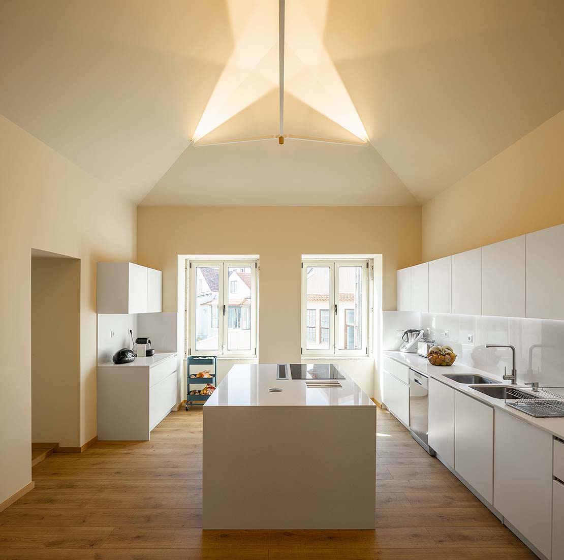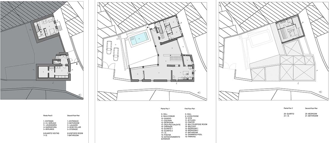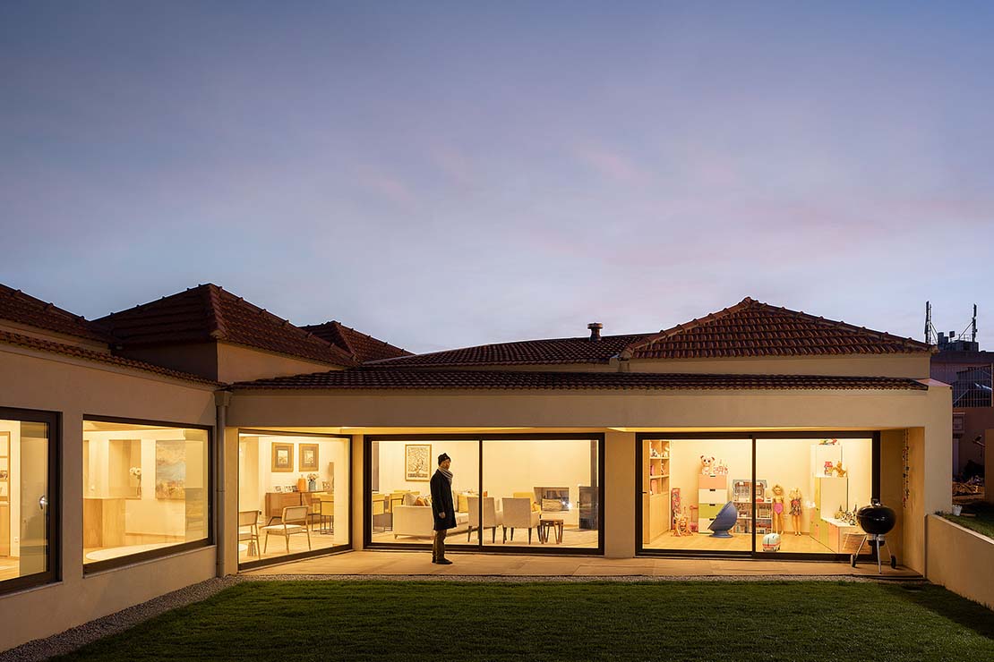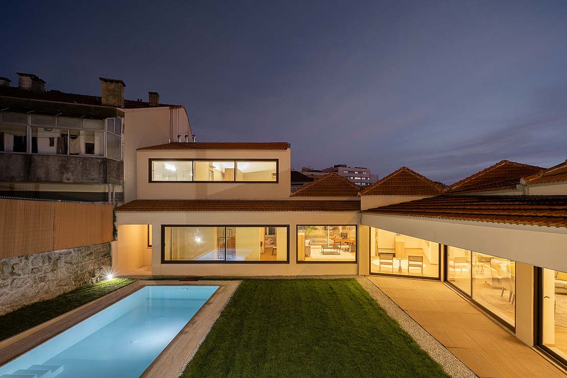 L'agence portugaise Ren Ito Arquiteto, en fusionnant et en restaurant les deux maisons préexistantes, a créé un nouveau volume en forme de "L" qui redéfinit l'espace extérieur complété par la piscine qui semble l'embrasser