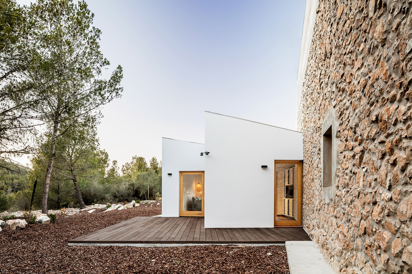 Situé à l'entrée du Parc Naturel de Garraf, juste à l'extérieur de la ville de Saint Pere de Ribes, Can Tomeu a été construit à des fins agricoles et d'extraction de pierre. Au fil du temps, le bâtiment abandonné s'est lentement détérioré et seules ses murs porteurs ont survécu à cette dégradation. L'intervention d'Andrea Solé Arquitecta visait à la récupération conservatrice du volume d'origine et à son expansion, conformément à la législation le permettant, de 30% sous forme d'annexion
