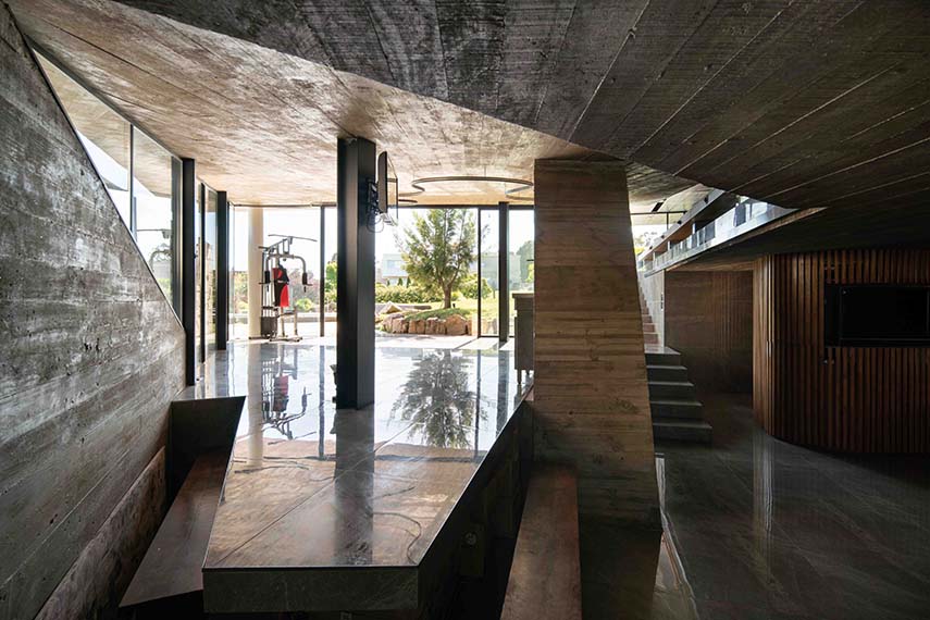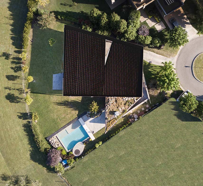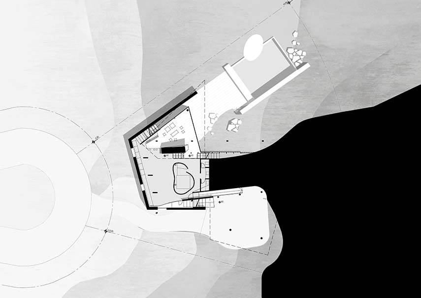 Le terrain sur lequel le cabinet TAM Arquitectura a développé l'un de ses projets d'architecture les plus intéressants, la Maison 388, est situé dans un cul-de-sac circulaire, se présentant comme une portion de cercle de 1350 mètres carrés caractérisée par une forte pente. Ce terrain donne sur une petite place en façade, créant un point d'entrée accueillant, tandis que de l'autre côté, il s'ouvre vers le nord, offrant une vue dégagée sur un grand espace vert.
