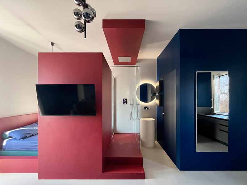 Casa Cooper, pied-à-terre milanais se teinte de rouge et bleu