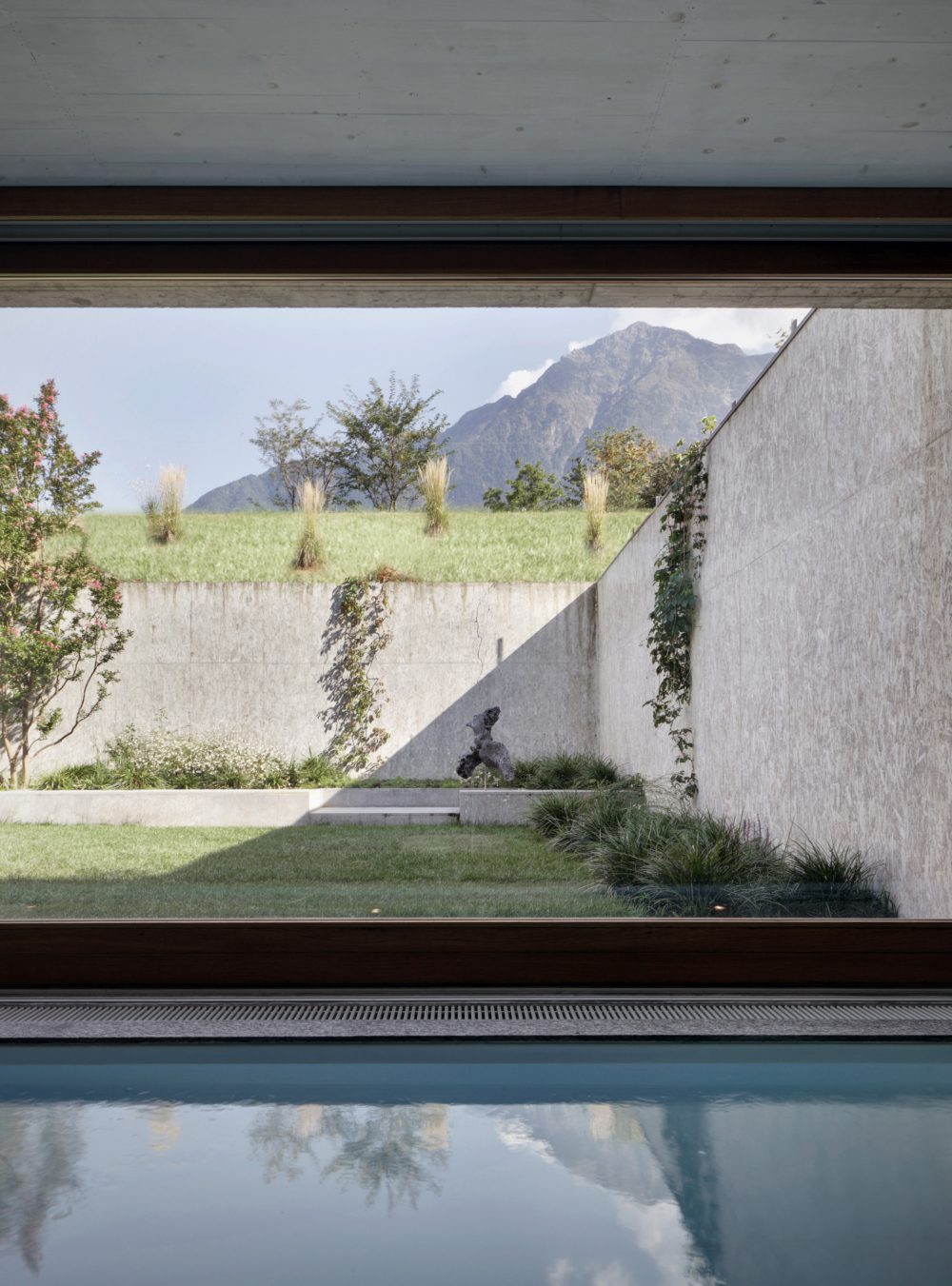 La sequenza di patii e cortili permette alla luce di penetrare nel piano semi-interrato della zona notte.Genera spazi protetti dai venti dominanti e rimanda la vista solo al cielo e alle montagne circostanti eliminando dalla vista le costruzioni all’intorno prive di qualità
