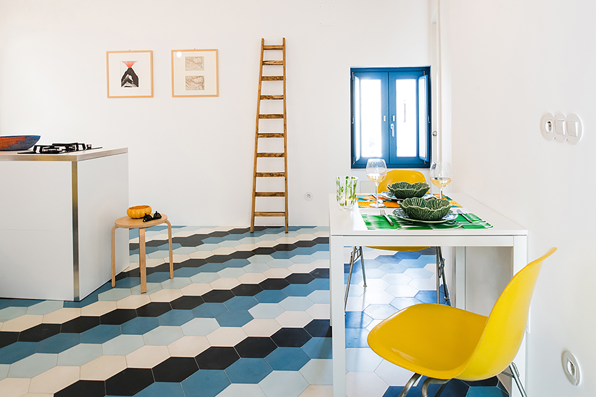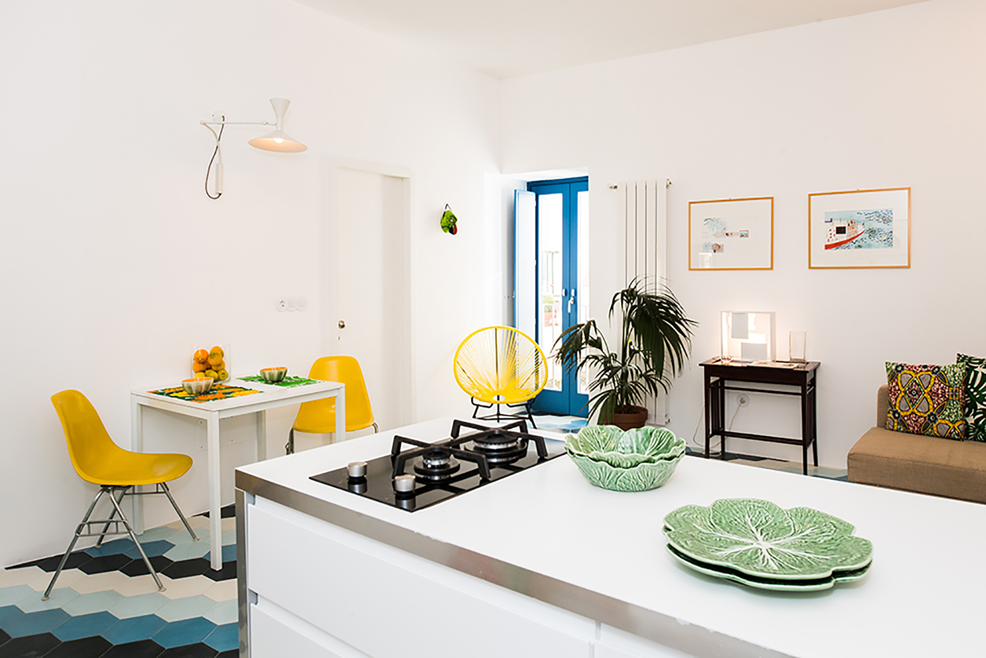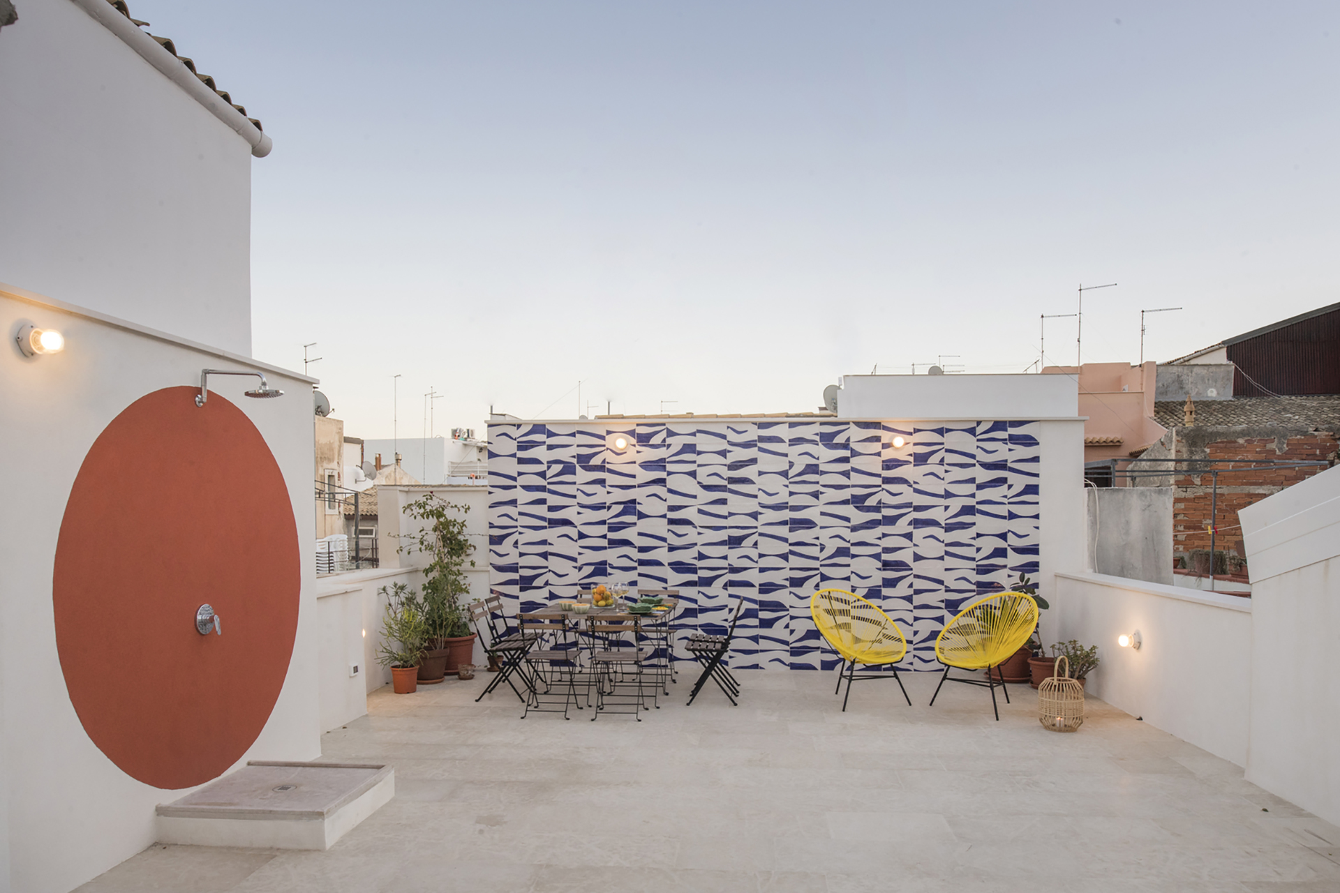La structure éclectique de la maison, sa vue sur la mer ont été l'incitation à concevoir cette maison avec des couleurs intenses mais naturelles qui sont les mêmes que les couleurs du ciel, de la mer, des toits, qui semblent créer un continuum entre la terrasse, le centre de la maison et son intérieur