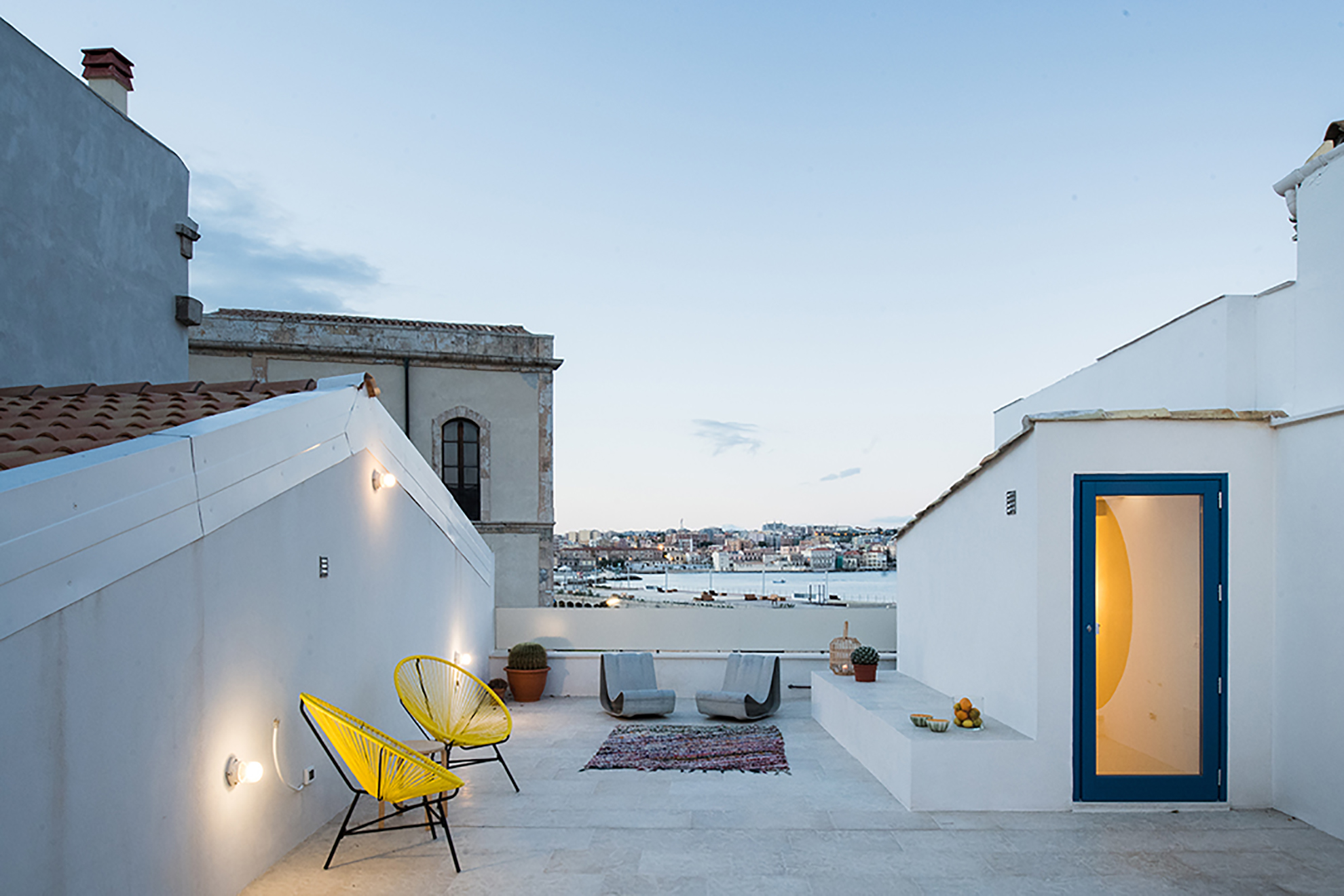 Maison située à Syracuse sur la mer Ionienne. Une ancienne maison de pêcheur transformée en diptyque éclectique
