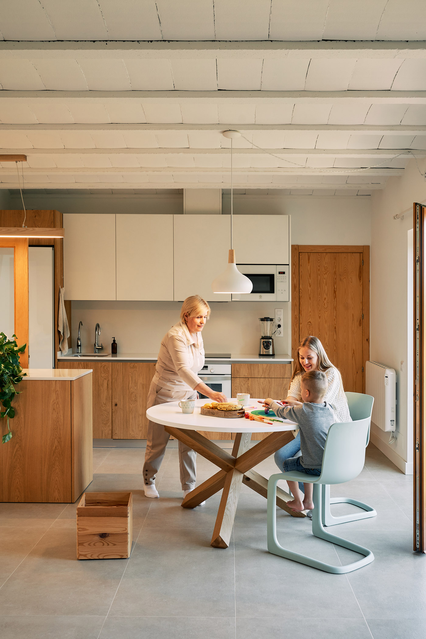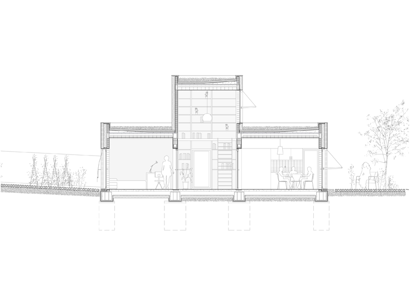 Les concepteurs de Slow Studio, un studio spécialisé dans les projets architecturaux écologiques, envisagent un espace central qui capte la lumière et la chaleur. Pour la Casa en Massís del Garraf, cet espace est créé sous la forme d'un atrium couvert avec des ouvertures au sud dans la partie qui s'élève au-dessus du toit : les pièces sont organisées autour de cet atrium bioclimatique. L'espace central à double hauteur accumule la chaleur grâce à une ouverture supérieure au sud et permet de tempérer les pièces dans la zone nord et de générer une ventilation croisée.