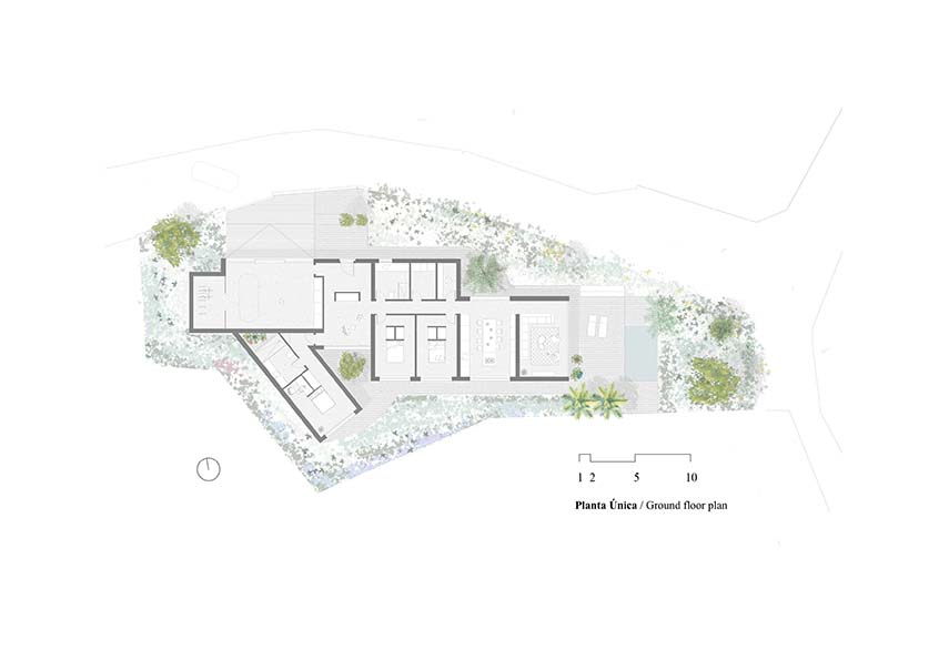 Dans cette zone "rurbaine" du nord de l'Espagne, le phénomène du minifundio, c'est-à-dire la division des terres agricoles entre tous les héritiers, a généré une lotissement irrégulier et très fragmenté. Les terrains, aujourd'hui constructibles, sont petits et de formes inhabituelles. Les commanditaires de Casa Máxima demandent au cabinet d'architecture Gramática Arquitectónica une maison sur un seul niveau: ainsi, les architectes proposent de souligner la fragmentation et d'en faire le thème compositionnel