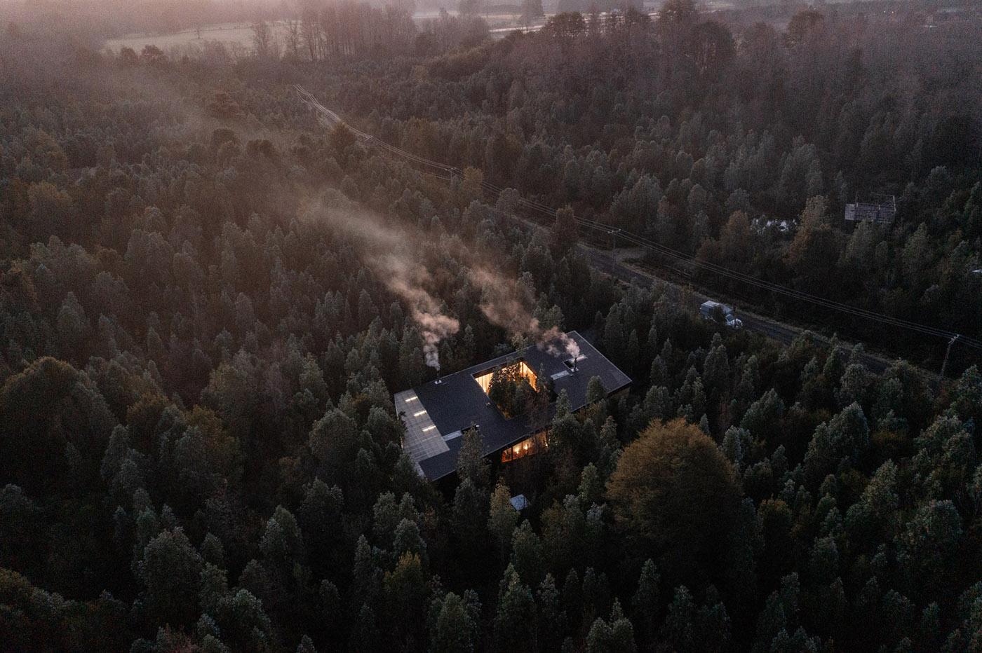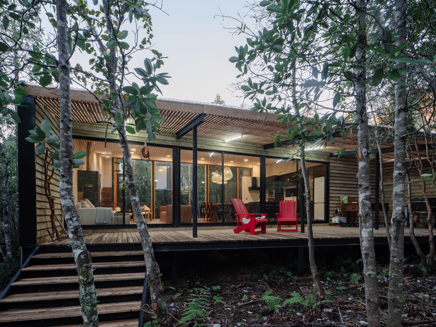 Au centre de Casa Un Patio s'ouvre un vide, conçu pour valoriser et intégrer une partie de la forêt à l'intérieur de la maison. Cet espace offre non seulement une continuité visuelle entre l'intérieur et l'extérieur, mais devient également un lieu de rencontre entre les habitants et la nature environnante. Il s'agit de l'un des projets d'architecture de l'architecte Lucas Maino Fernandez, reconnu et apprécié dans le paysage architectural contemporain.