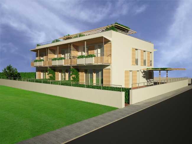 La costruzione è quindi principalmente in legno, ad esclusione della platea cementizia, della soletta in cls collaborante con i solai lignei e di alcune pareti divisorie interne realizzate in cartongesso a doppia lastra. Grande attenzione è stata posta, pertanto, al contenimento energetico verificando con cura sia in fase di progettazione che di realizzazione tutti le problematiche e gli espedienti necessari all'obiettivo, tra cui in sintesi:
