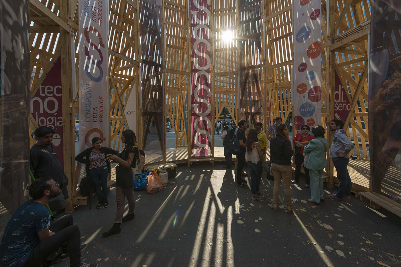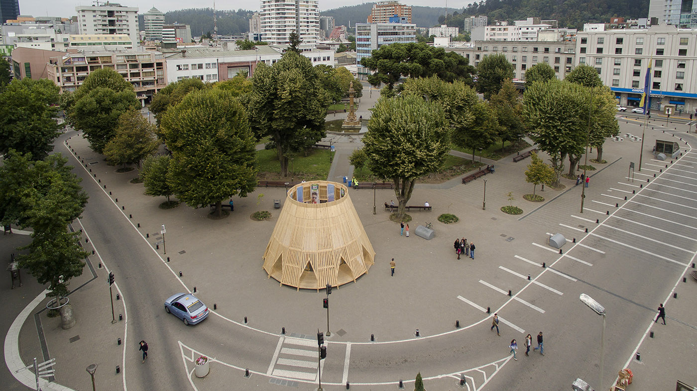 An easily transportable wooden pavilion is located in Independence Square in the Chilean city of Concepción. But what is this really about? Commissioned by the development company CORFO Chile, CCP Pavilion hosts activities and exhibitions related to the city's manufacturing sector