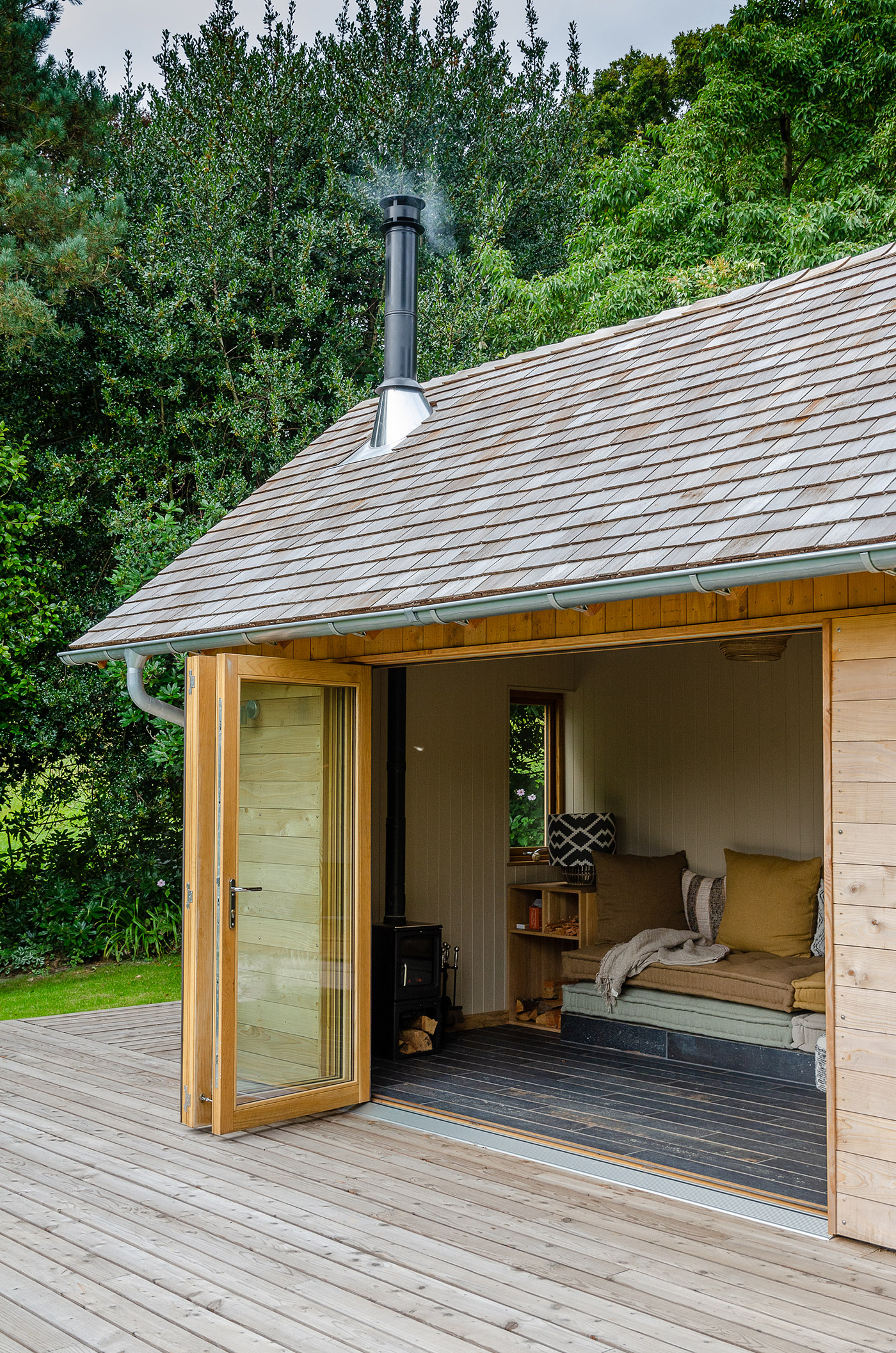 Conçu par Out of the Valley pour être apprécié en toutes saisons, les clients souhaitaient créer un espace de loisirs et de restauration, comme dans des projets d'architecture similaires, il était important que la forme et les matériaux rappellent et s'harmonisent avec la maison principale.