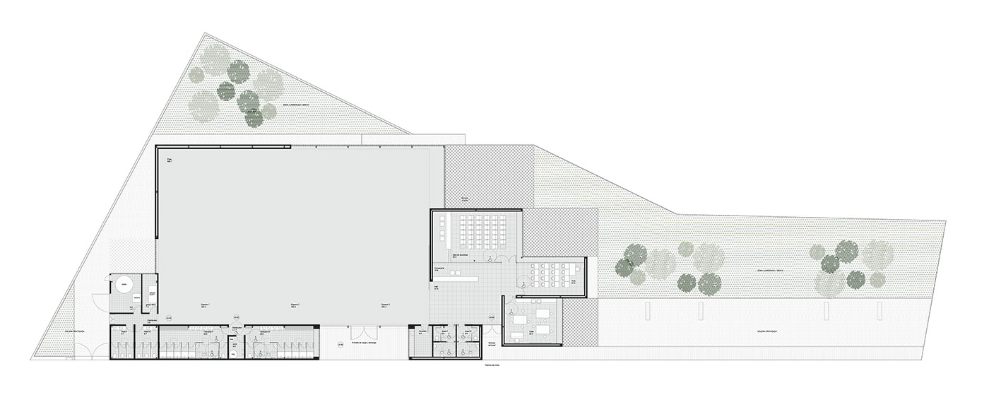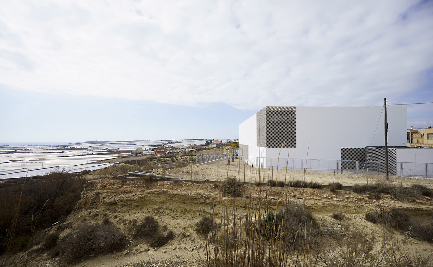 Le Centre Polyvalent de Matagorda, conçu par le cabinet Fresneda & Zamora Arquitectura, s'insère de manière stratégique à la limite nord du terrain, établissant un dialogue direct avec la route principale. Cette intervention, typique des projets d'architecture contemporains, permet de libérer le reste du terrain, le transformant en un espace accueillant et fonctionnel, dominé par un belvédère donnant sur le fascinant et vaste "océan de plastique". Ce choix architectural souligne l'intention de valoriser le paysage environnant, créant un équilibre entre le bâti et la nature.
