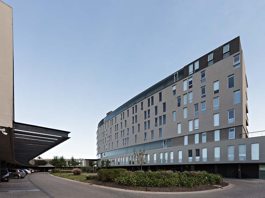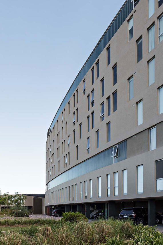 Dans les riches banlieues de Buenos Aires, sur la zone humide du fleuve Paranà, le Complexe Résidentiel La Mansa situé dans le Barrio del Golf, propose des solutions de logement exclusives. L'œuvre est l'un des projets d'architecture du cabinet argentin Forcinito Arquitectos, qui dessine pour le complexe deux solides à différentes hauteurs qui s'enroulent de manière sinueuse pour contenir le terrain