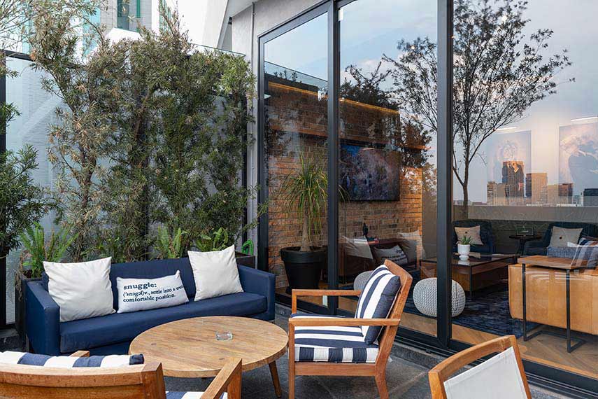 ARCO Arquitectura Contemporánea conçoit pour son client le Corporativo P10: un bureau avec tout le nécessaire pour être fonctionnel dans une atmosphère agréable et confortable. Un espace de travail défini par un grand bureau en forme de L communique directement avec un salon pour les réunions, équipé d'un grand écran pour les présentations ou les visioconférences. D'esprit très informel, bien que les tons soient élégants, cet espace convient également aux rencontres conviviales
